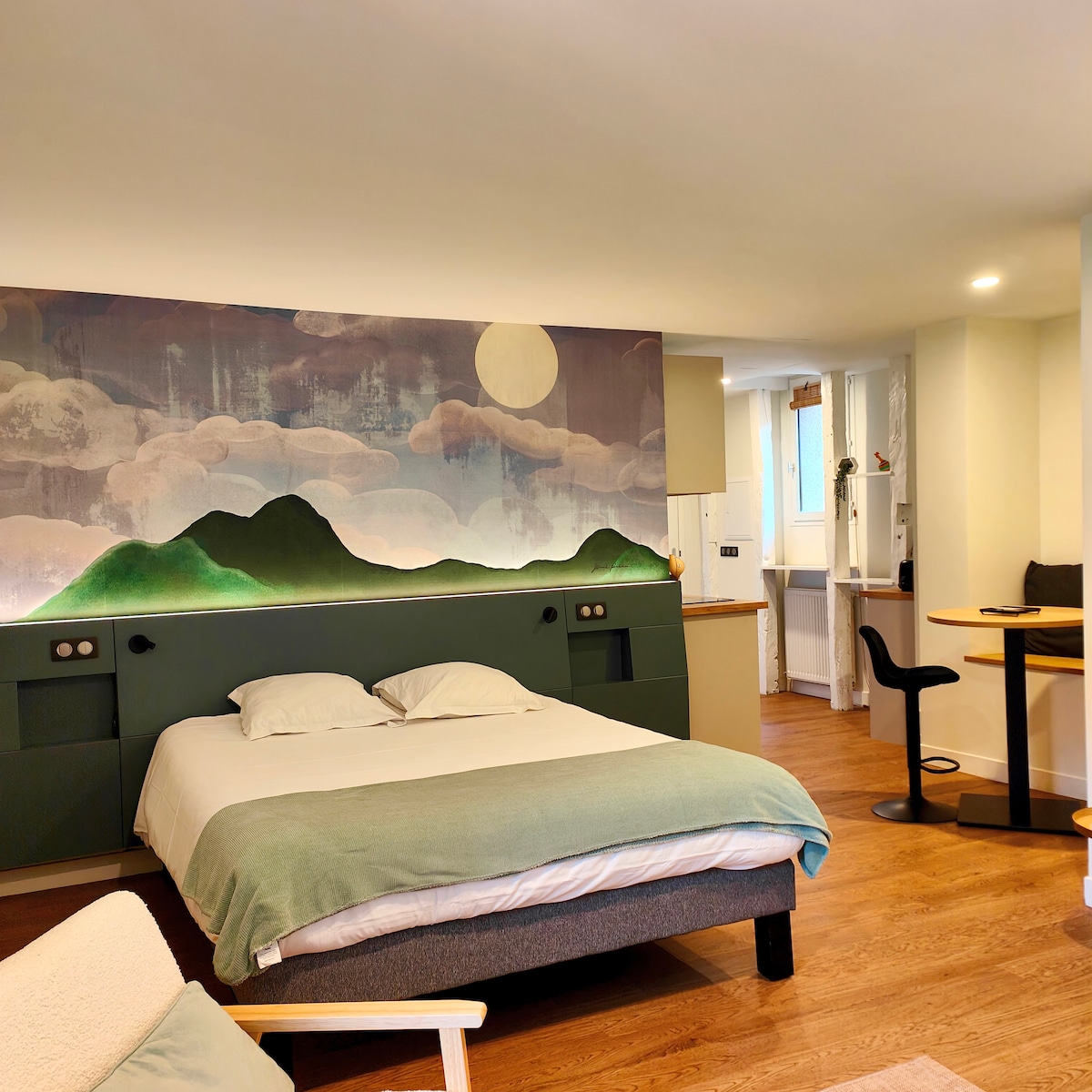 Studio Appart'hotel tout neuf, confortable et élégant avec tout le confort et les commodités d'un service hôtelier (draps, linge de toilette, ménage, Smart TV, literie confortable, Wi-Fi) doté d'une cuisine équipée (lave vaisselle, plaque induction, four micro ondes, machine à café Senséo, ustensiles cuisines...) vous permettant de gérer votre séjour en toute autonomie, comme à la maison ! Avec une vue imprenable sur le village et ses falaises.