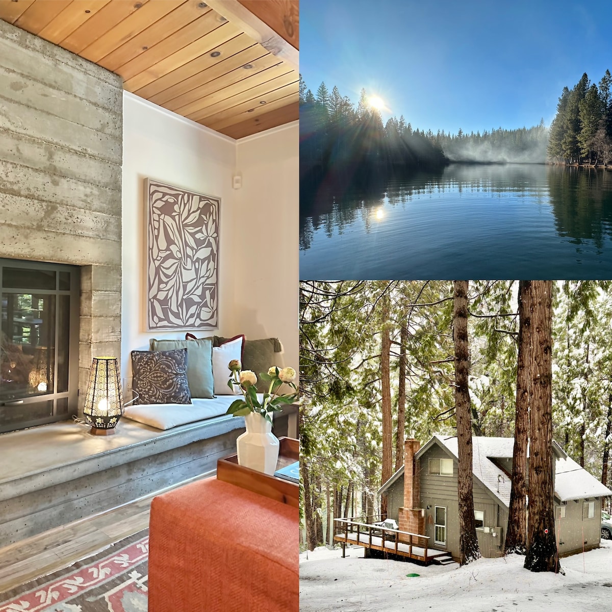 The Arnold Treehouse Cabin is a one-of-a-kind home, located a short drive from the Big Trees and Wine country. Recently remodeled this is a home with such an elevated look and feel. Designed with beautiful materials and furnished with modern and rustic pieces the Cabin sleeps 10-12. The interior is a open-plan. An expansive two story deck shows off beautiful views. All upscale cookware, mattresses and Lenin’s. Our home is equipped with central heat and AC.