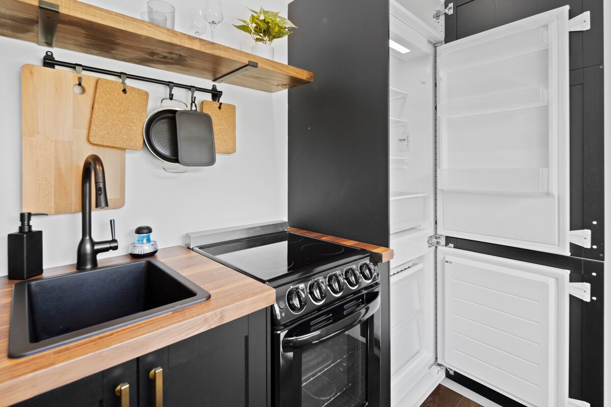 Selamat datang di Onyx Container Home — tempat liburan kecil Anda yang bergaya—tempat desain modern bertemu kenyamanan yang santai. Rumah mungil unik ini memiliki tempat tidur queen yang nyaman, dek utama yang luas untuk bersantai, dek pribadi di luar kamar tidur untuk minum kopi pagi atau mengamati bintang, dapur ramping dengan semua perlengkapan dasar, dan kamar mandi lengkap tanpa noda. Terletak hanya beberapa menit dari tempat makan, toko, dan jalur terbaik di Asheville, ini adalah titik awal yang sempurna untuk petualangan WNC Anda berikutnya—atau hanya tempat yang nyaman untuk bersantai dengan penuh gaya.