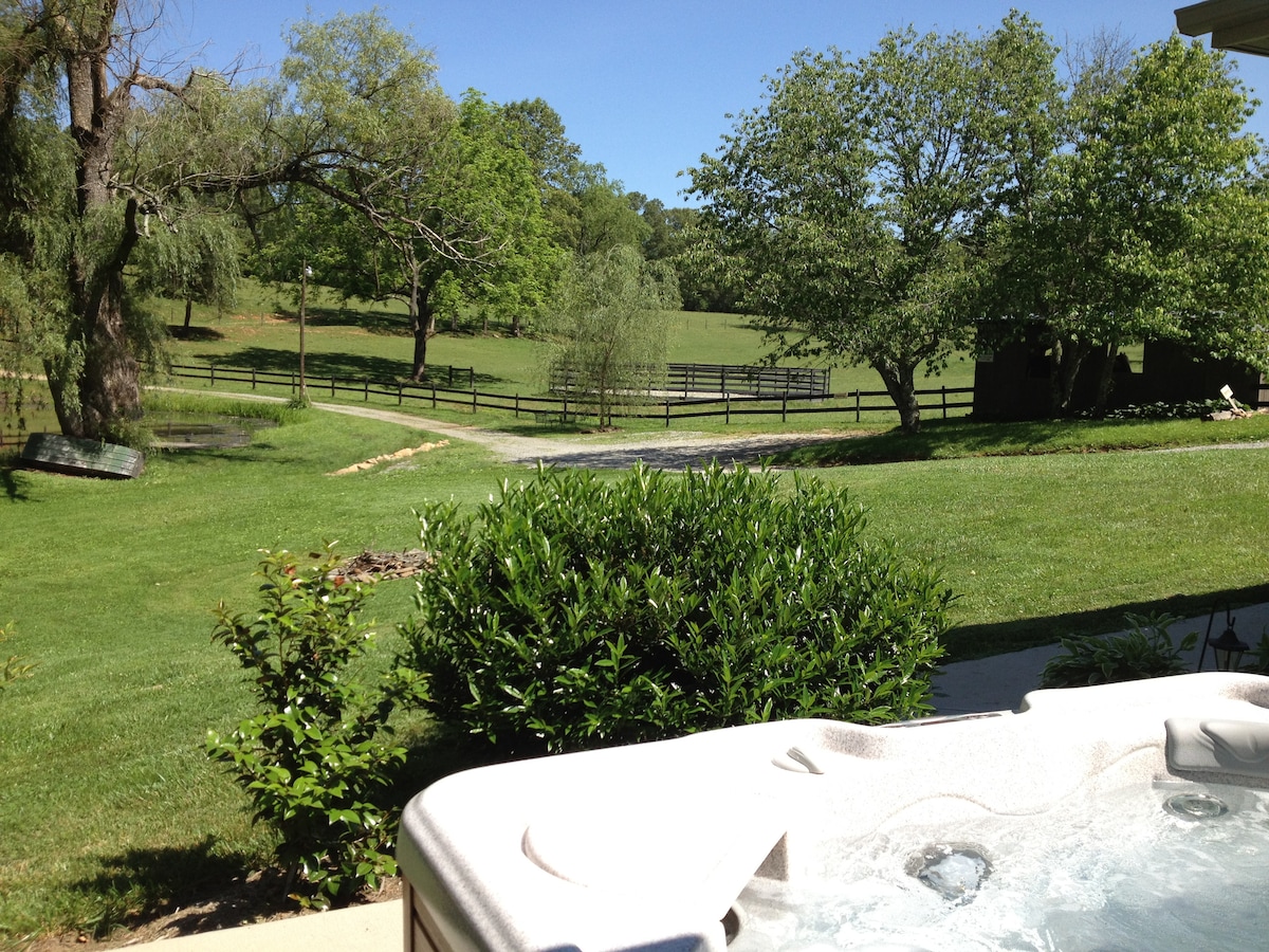 Cicipi suasana tenang yang tinggal di samping padang rumput yang damai. Tatap hutan dan gunung dari jendela dan temukan kursi empuk yang nyaman untuk bersantai dan membaca. Jelajahi pabrik bir terdekat dan kembalilah untuk tidur malam yang nyenyak di bawah atap miring yang tinggi. The Nest sangat pribadi, damai dan tenang. Anda akan memiliki seluruh apartemen garasi baru untuk Anda sendiri dengan pintu masuk Anda sendiri dan dua tempat parkir. Loteng ini berisi kamar mandi seperti spa pribadi dengan pancuran besar, tempat tidur queen yang nyaman, area duduk yang santai, dan dapur kecil. Kami juga menyediakan kopi dan teh dan semua perlengkapan dasar. Para tamu akan memiliki akses/pintu masuk pribadi mereka sendiri tetapi dipersilakan untuk berjalan - jalan di sekitar jalur kami yang indah. Saya siap menjawab pertanyaan atau rekomendasi apa pun. Kami senang mengobrol dengan tamu kami dan memperkenalkan diri, namun juga akan menjaga privasi Anda jika diinginkan. Guest house ini berada di jalan pribadi dekat padang rumput kuda. Dekat dengan Hendersonville, Brevard, Tyron, dan Asheville. The Biltmore House, hiking dan pemandangan yang luar biasa bersama dengan banyak restoran, toko, dan tempat pembuatan bir yang luar biasa juga ada di area ini. Sebaiknya Anda menyewa atau membawa mobil Anda sendiri. Tidak ada transportasi umum di area ini, namun Anda bisa menggunakan Uber.