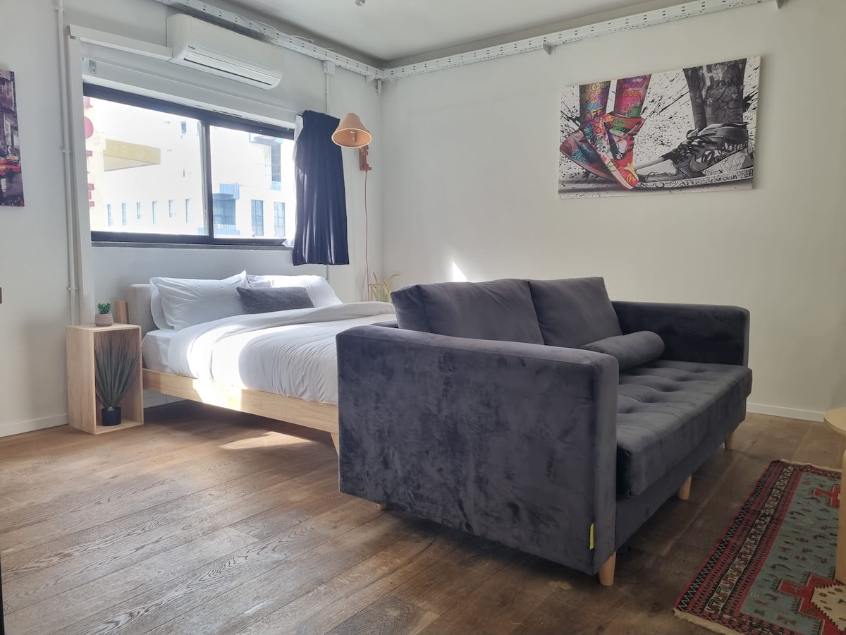 Tempat berlindung bom yang nyaman tersedia di gedung sebelahnya. 6 menit berjalan kaki ke pantai, 2 menit ke pasar, kehidupan malam & kafe yang luar biasa di sekitar Kerem Hatimanin dan Neve Tzedek dan Rothchild Ave. Tempat ini sangat cocok untuk satu atau dua orang yang ingin menjelajahi kota dengan anggaran terbatas, sambil tidur dengan nyaman di lokasi terbaik. Tempat ini memiliki dapur kecil, pancuran besar, dan tempat tidur sofa ekstra untuk tidur dua teman. Kami tinggal tepat di sebelah dan berada di sekitar untuk menjadikan pengalaman Anda sebaik mungkin.