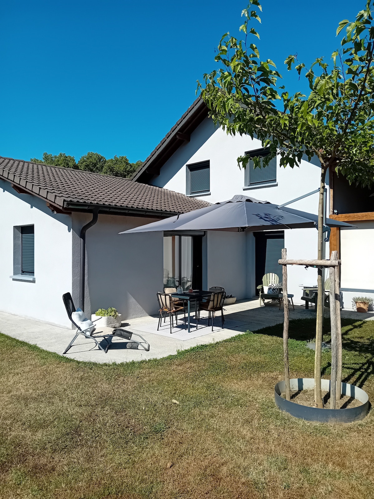 Rumah baru dan luas di lahan tertutup yang luas. Tersedia kolam renang di atas tanah dan permainan anak - anak. Pintu keluar tol A43 2 menit dari rumah. Akses cepat ke Danau Aiguebelette atau Le Bourget, dan 1 jam dari pegunungan Bauges, Chartreuse... atau Lyon. Rumah menghadap selatan, dengan furnitur taman yang dipasang dari hari - hari yang cerah. dekat walibi Rhone Alpes Park