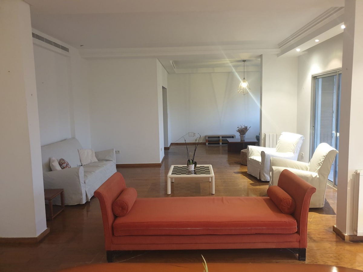 Halo untuk semua, Kami menyewa apartemen orang tua tua yang luas dan berwarna - warni ini. Kami tinggal di lingkungan yang tenang dan nyaman dekat dengan banyak tempat menarik : - Horsh Beirut (taman pohon pinus terbesar di Beirut). Luasnya sekitar 400.000 m² ruang hijau. - Beirut Hippodrome - Pub, restoran, dan kafe lokal Badaro - Museum Nasional - Dan masih banyak lagi yang bisa dijelajahi