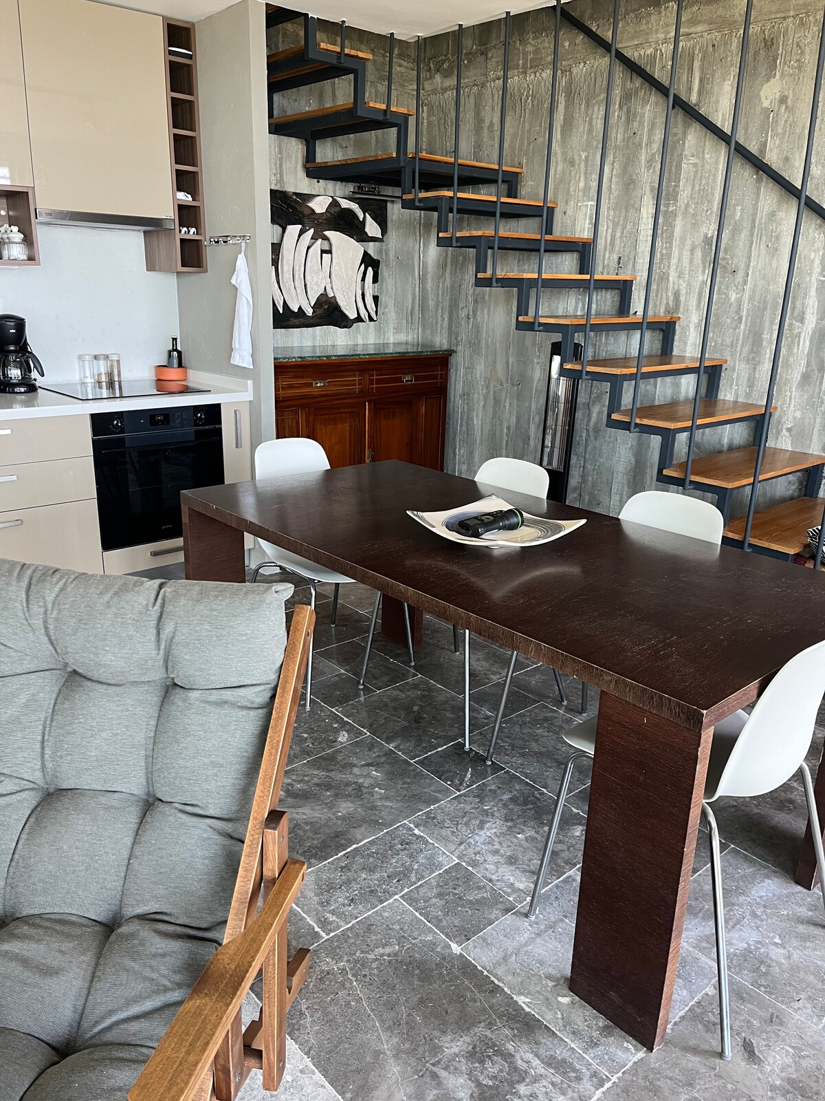 Rumah ini, yang menawarkan berbagai pengalaman akomodasi kepada tamunya dan baru dipulihkan, akan memberi Anda ketenangan dan membuat liburan Anda tak terlupakan dengan dekorasi aslinya. Mezzanine adalah kamar mandi yang indah dan lantai dasar adalah ruang tamu. Pulau dapur terbuka berubah menjadi meja saat diminta. Jalanan, seperti rumah, berubah menjadi pemandangan saat pintu dibuka. Rumah telah dipulihkan tanpa gangguan, mereka yang mencari kebersihan yang berlebihan mungkin tidak puas.