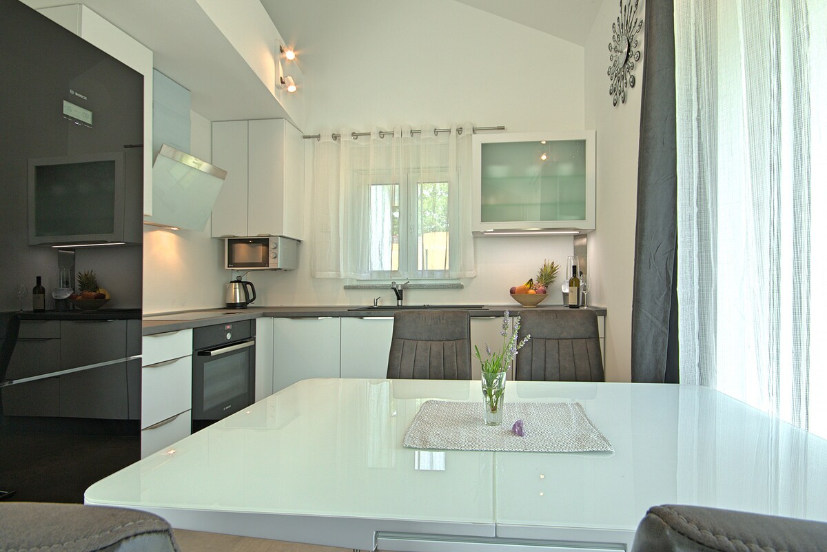 Apartemen ini terletak dekat dengan pusat kota Opatija, hanya beberapa menit jauhnya dengan mobil atau delapan menit berjalan kaki. Terdiri dari ruang tamu, kamar tidur, ruang makan, dua kamar mandi, dapur, sauna, lounge ruang terbuka, teras, taman di sekitarnya dan tempat parkir mobil. Berkat fakta berada di lantai dasar dengan taman di sekitarnya, Anda memiliki sensasi menyewa rumah dan bukan apartemen.