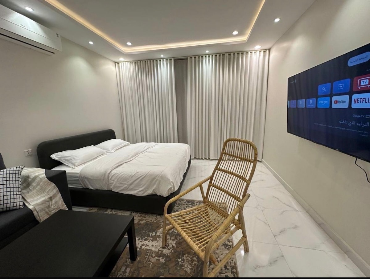 • Pemandangan panorama kota yang indah • Desain modern dan furnitur mewah • Smart TV dengan layanan streaming • Pencahayaan tersembunyi menambah kenyamanan dan relaksasi • Sesi yang nyaman dan karpet mewah • AC • Lokasi pusat dekat dengan restoran, kafe dan pasar Lokasi: Pusat Kota Al Bahah – Lingkungan Tinggal Tenang dan Lokasi Strategis Tempat parkir tersedia di dekat lokasi Cocok untuk penginapan harian atau mingguan.