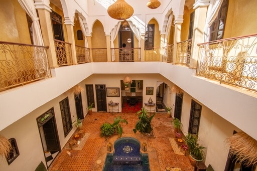 Notre Riad est une promesse d'évasion. Imaginez vos matinées bercées par le chant des oiseaux dans le patio et vos soirées sur la terrasse surplombant la ville rouge. Un mélange raffiné de zelliges traditionnels et de confort contemporain. Un salon de lecture pour s'évader, des chambres élégantes pour se ressourcer. Un patio rafraîchissant, pour le café du matin et un rooftop pour savourer le coucher du soleil. Hospitalité marocaine et confort absolu : votre parenthèse enchantée commence ici.