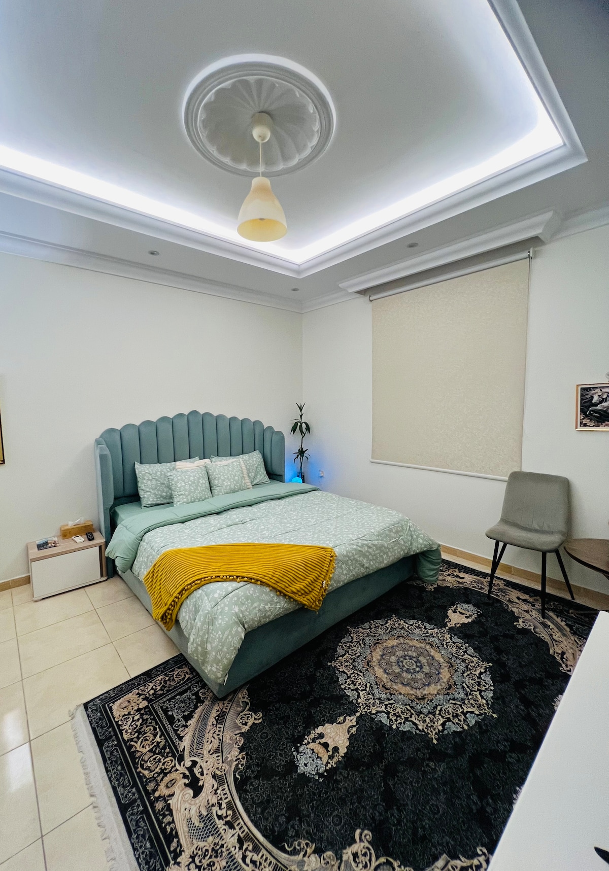 Studio mewah dengan pintu masuk mandiri ini terletak di lingkungan Al-Faiha, yang dikenal dengan lokasinya yang istimewa dan dekat dengan semua area vital (Universitas King Abdulaziz, Rumah Sakit Dr. Sulaiman Al-Habib, stasiun kereta api, dan layanan sehari-hari sepanjang waktu. Studio ini memiliki kamar tidur utama dengan kamar mandi pribadi dan ruang tamu yang elegan dan nyaman yang dilengkapi dengan layar pintar dengan akses internet, Netflix, VIP Watch, dan aplikasi lainnya. Tempat ini juga memiliki beberapa permainan hiburan kecil. Anda juga dapat menikmati membuat teh dan kopi. Ada juga kulkas, setrika, meja setrika, dan tempat parkir pribadi.