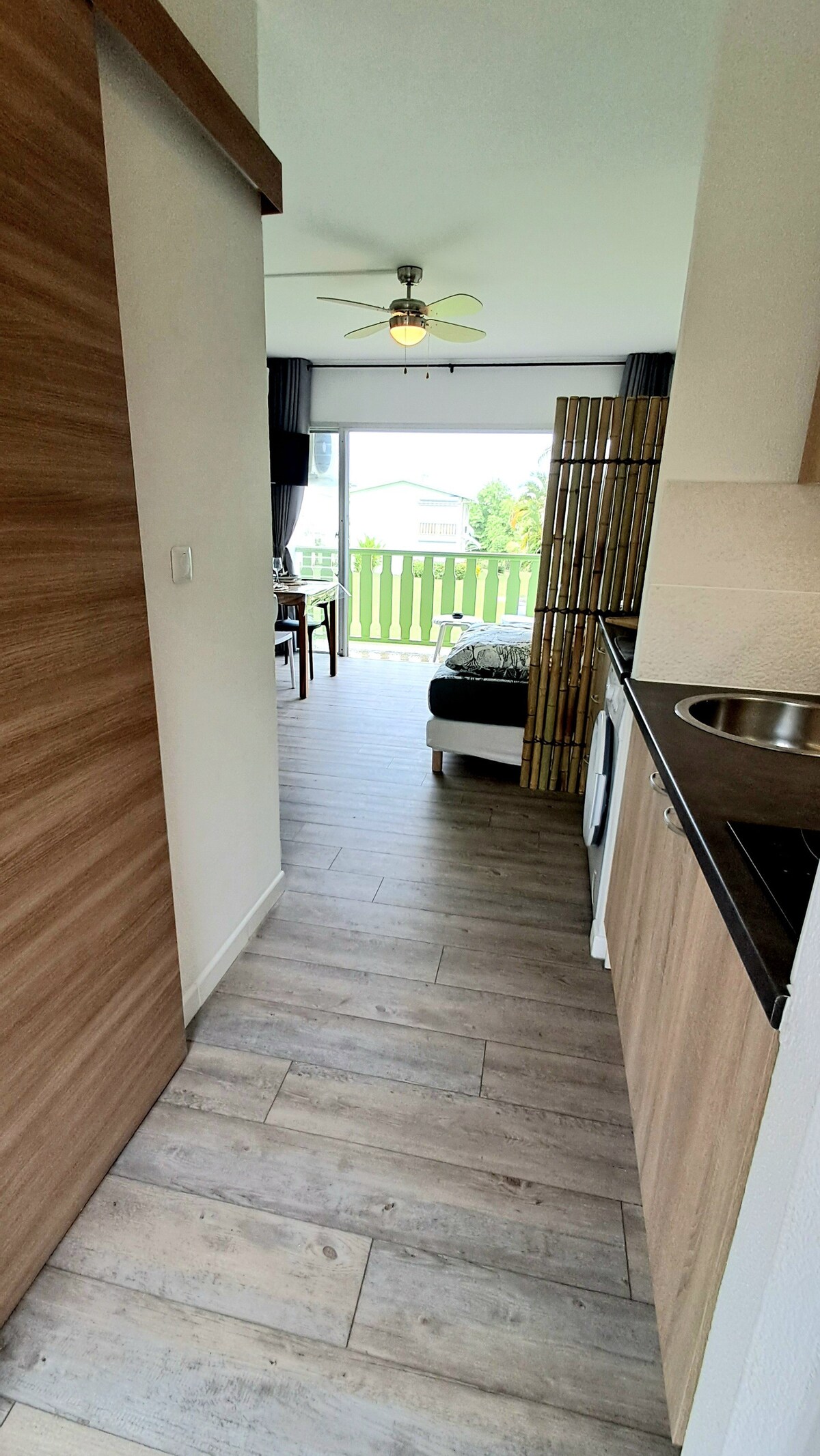 Selamat datang di studio liburan Anda, di jantung properti kecil yang rindang hanya beberapa langkah dari pantai Pointe Marin. Baru direnovasi dengan suasana alami, apartemen ini cocok untuk wisatawan yang mencari keterputusan. Untuk kemandirian total, tempat ini memiliki dapur lengkap dan mesin cuci. Terakhir, teras kayunya sangat ideal untuk makan hingga kicauan burung atau untuk menikmati koktail setelah hari yang melelahkan di pantai.