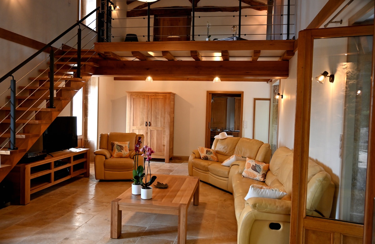 GRANGE di "Domaine de Gargoris" adalah bekas lumbung dari pertengahan 1800-an yang telah mengalami perubahan besar. Ruang tamu yang luas mengundang Anda untuk bersantai. Berdekatan adalah ruang makan dan dapur terbuka. Ada lima kamar tidur, masing-masing memiliki kamar mandi sendiri. Di luar Anda bisa menikmati teras pribadi dengan BBQ dan pemandangan kolam renang yang memukau. Kenyamanan maksimum dan lautan ruang untuk rombongan hingga 10 orang. Domain ini juga memiliki taman bermain, area yang tenang, dan hutan ek!
