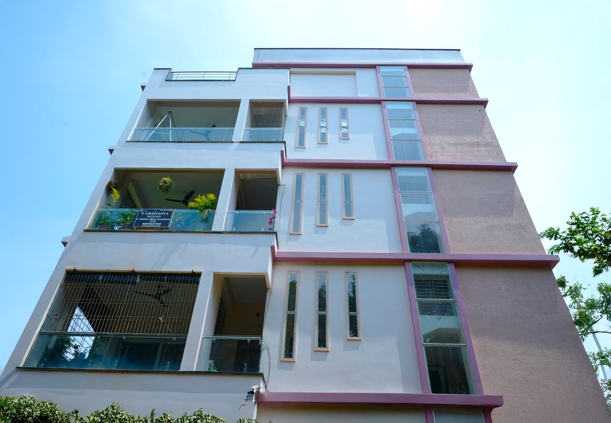 Penginapan butik yang tenang terletak di Kakinada, dirancang dengan keanggunan yang sederhana dan kehangatan Godavari. Rumah 3 BHK kami memadukan kenyamanan modern dengan pesona. Dari interior yang dipilih dan dapur lengkap hingga sentuhan yang apik seperti Wi-Fi, dll setiap detail mengundang Anda untuk bersantai dan merasa seperti di rumah. Ideal untuk wisatawan yang cerdas dan tamu jangka panjang yang mencari kenyamanan dengan karakter. 1 jam ke Annavaram 45 menit ke Draksharamam. 5 menit ke Jalan Utama Kakinada Ps: Kartu ID wajib ditunjukkan saat Check-in