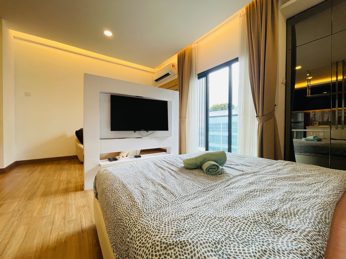 Netizen SOHO berada di dekat MRT BTHO! Sangat cocok untuk wisatawan yang mencari kemudahan, kenyamanan, dan akses mudah ke transportasi umum. Saat memasuki Airbnb, Anda akan disambut dengan suasana yang hangat dan menarik. Interiornya dihiasi dengan perabotan modern dan warna yang menenangkan, menciptakan suasana santai untuk masa inap Anda. Ruang tamu yang nyaman dilengkapi dengan sofa yang nyaman, TV layar datar untuk hiburan, dan jendela besar yang memungkinkan cahaya alami mencerahkan ruangan.