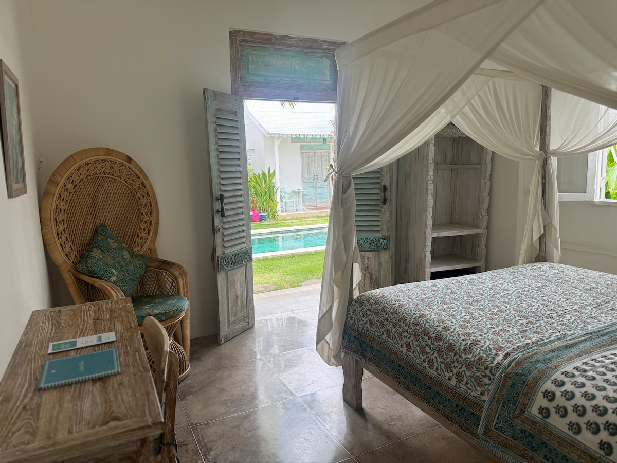 Selamat datang di Bajalo Cottage Canggu. Rasakan suasana tenang dan tenteram yang dipadukan dengan taman yang indah. Fasilitas Properti: - Ukuran tempat tidur King - AC. - kamar mandi terbuka +bak mandi - Teras dengan kursi + meja - dapur umum - Wifi 75Mbps yang mencakup seluruh properti Bajalo cottage berlokasi dekat dengan jalan pintas Canggu. Hanya sekitar 5 menit dengan skuter untuk mencapai pantai dan pusat Canggu. (Harap perhatikan: anak-anak tidak diizinkan menginap.)