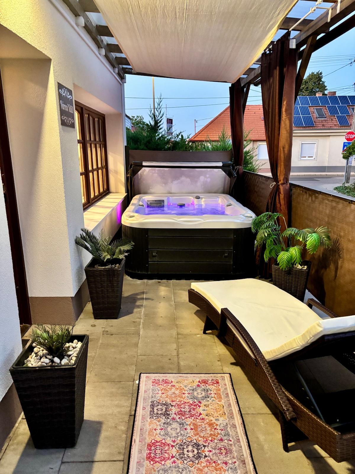 Oasis modern dan tenang - milik Anda selama beberapa hari! Dari musim gugur hingga musim semi, Anda bisa menyewa seluruh rumah dengan semua fasilitas ekstra dan layanan kesehatan, sehingga Anda bisa bersantai dengan nyaman hingga pukul 6 tanpa mengganggu ketenangan pikiran Anda. Ada halaman pribadi, bak mandi air panas luar ruangan pribadi, dan sauna mini, dan dua apartemen luas tempat Anda bisa mengisi ulang energi di bulan - bulan yang lebih dingin. Nomor Registrasi NTAK: MA22053444 Tipe tempat: Akomodasi pribadi