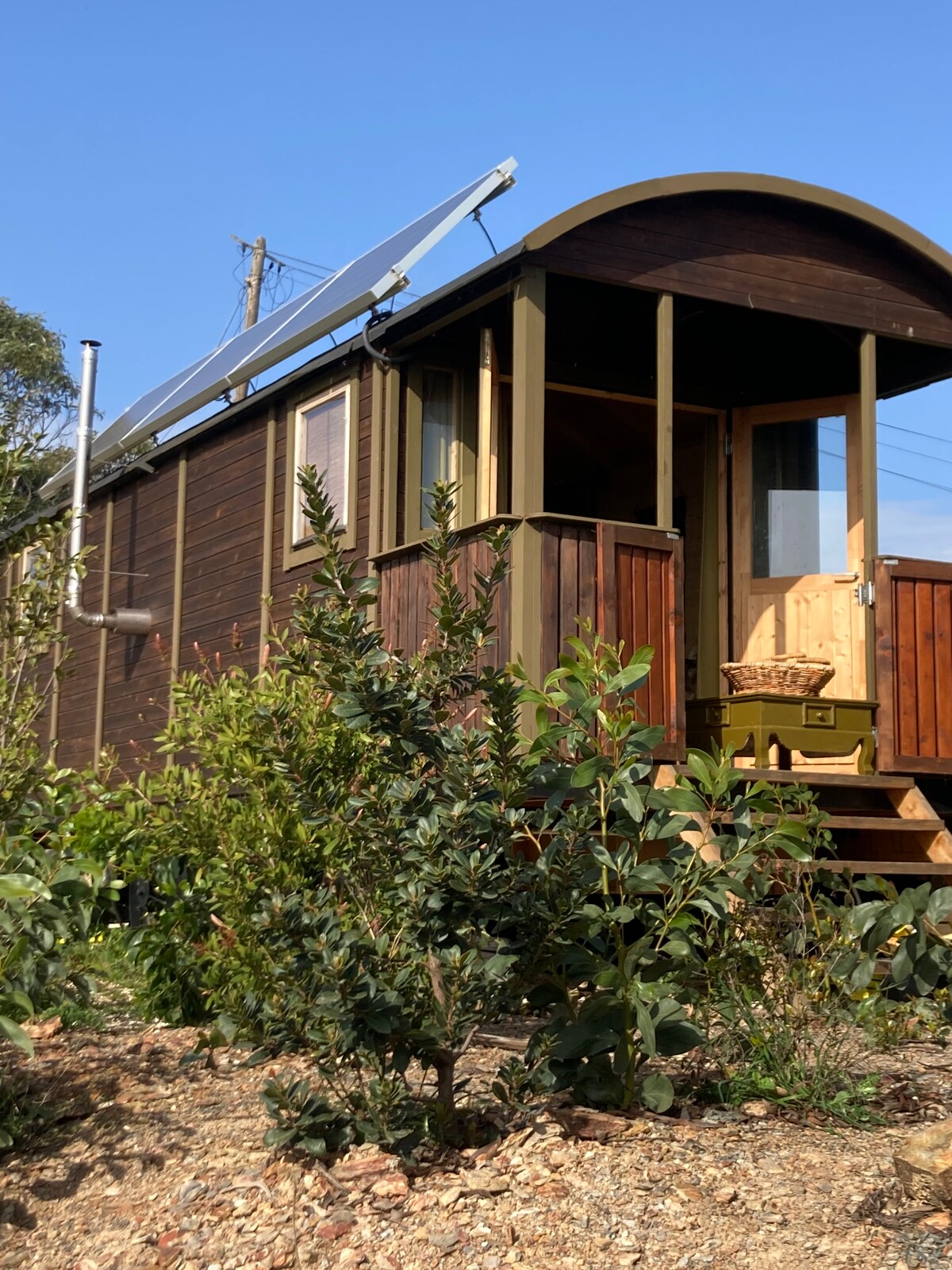 gerobak offgrid yang indah dengan pemandangan spektakuler