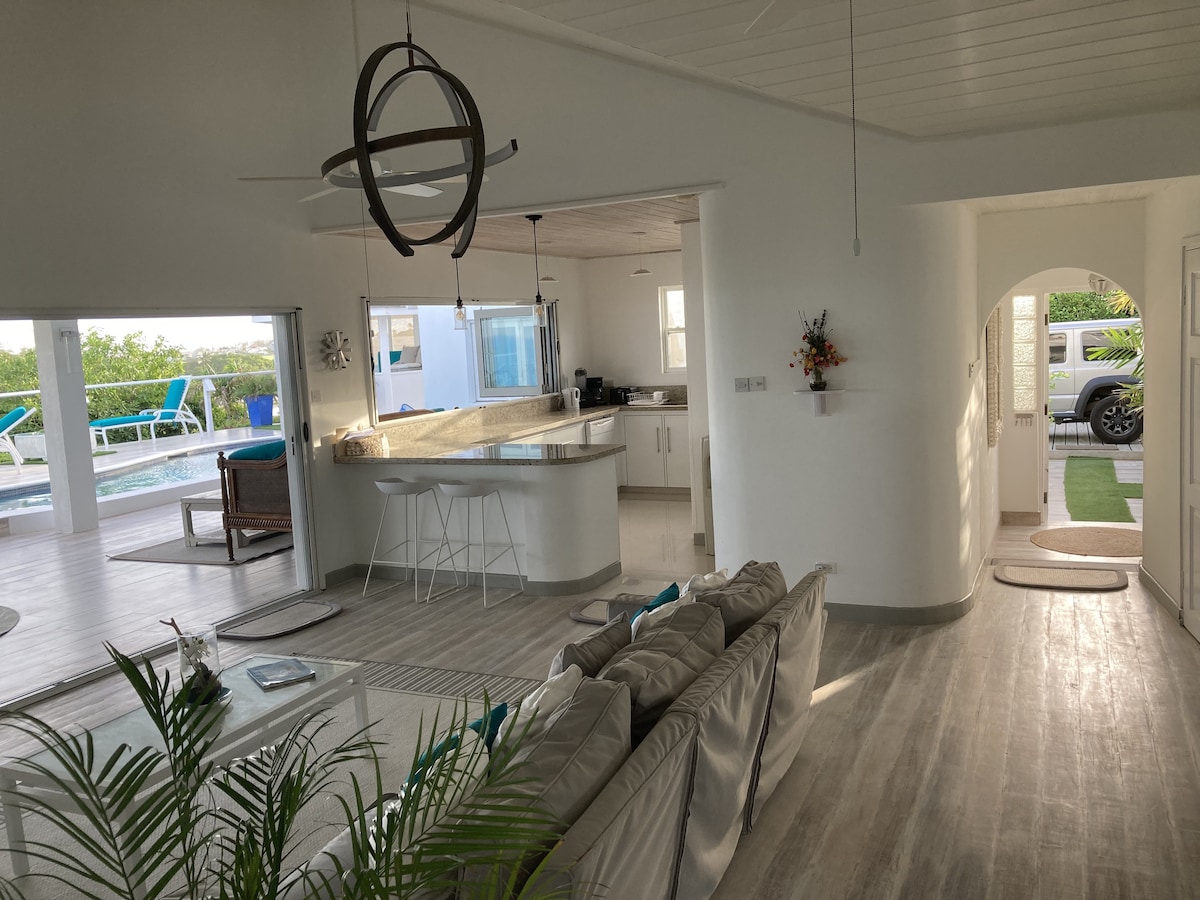 "Wake up to the ocean view in the Caribbean! Lovely bright spacious garden villa situated in a quiet residential area, the villa is very private and surrounded by lush garden with several mango and palm trees. Just over 2 mins walk to most beautiful beach where locals swim, look out for the turtles ! recommended as this is a getaway hideaway! 2025 refurb under new management. Prices not yet updated. New photos coming!