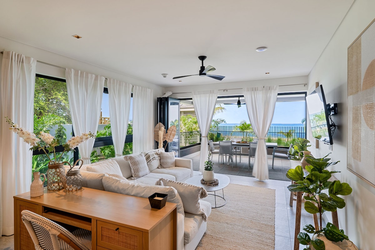 Selamat datang di Anidele Blue! Bersantailah dan bersantai di tempat yang tenang, bergaya, dan menarik ini, yang terletak di ujung utara Allure Condominiums yang baru saja selesai. Ada pemandangan menakjubkan apakah Anda berada di dalam ruang tamu, ruang makan dan dapur terbuka yang dibanjiri cahaya, salah satu dari tiga kamar tidur en - suite, atau di teras pribadi! Ada juga pemandangan laut panorama yang menakjubkan saat Anda mengakses dek atap, dengan kolam rendam, perapian, dan kursi berjemur. Matahari terbenam yang indah menanti Anda! Segera hubungi Anda!