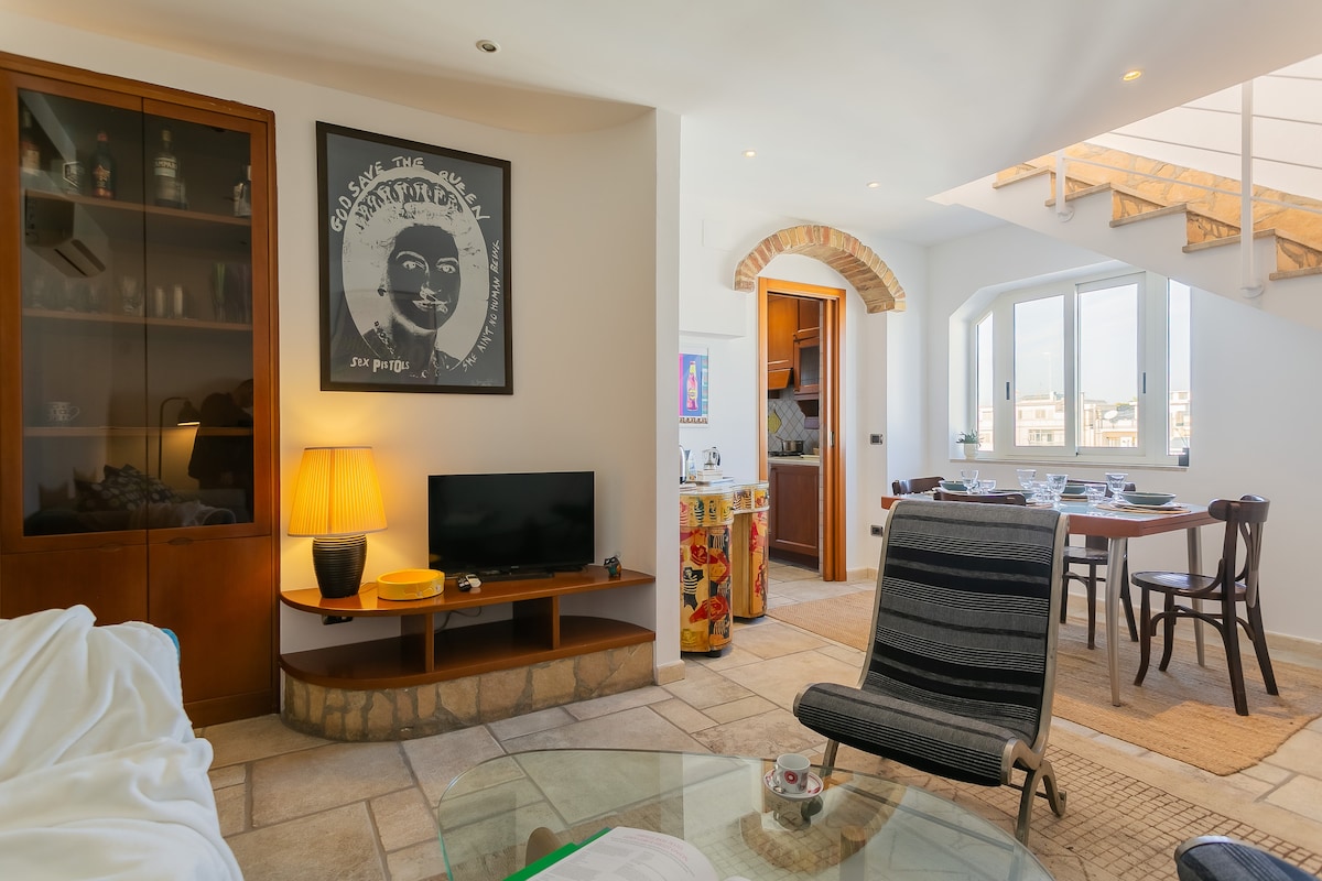 Apartemen dua kamar modern, sangat terang dan dilengkapi dengan setiap kenyamanan (AC di setiap kamar, Wi-Fi, 2 Smart TV, mesin cuci-pengering, dapur, dll.). Yang paling menonjol jelas lokasinya yang strategis, karena stasiun kereta, promenade, pusat kota, dan kota tua hanya berjarak beberapa menit berjalan kaki. Apartemen ini sangat terang berkat jendela atap dan balkon yang menghadap ke salah satu jalan paling sentral di ibu kota Apulian.