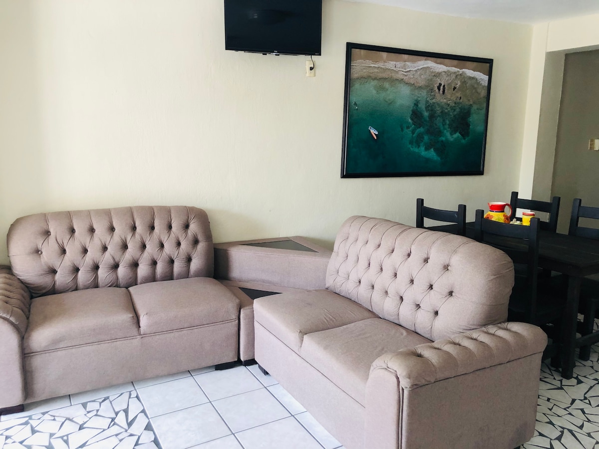 Casa entera, a dos cuadras de la playa, cocina equipada, comedor, sala, 2 dormitorios ubicados en planta alta, el dormitorio principal con baño privado y cama king size, estancia, 2 baños completos en áreas comunes, patio y cochera para 1 Auto. En los alrededores de la casa encuentras de todo desde un restaurante Japonés hasta una fonda para desayunar unos ricos chilaquiles el supermercado se encuentra a unos pasos de la casa, el transporte público pasa en la esquina y el taxi a dos cuadras.