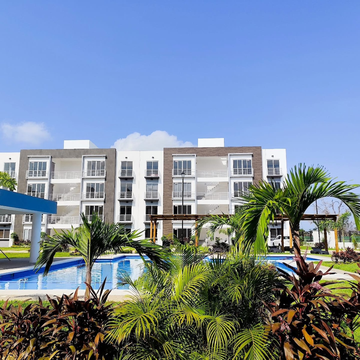Apartemen yang indah di kondominium. Tempat ini memiliki dua kolam renang dan klub pantai yang Anda akses di seberang jalan. Keamanan 24 jam 7 hari dalam seminggu. Sangat dekat dengan pusat perbelanjaan (Chedraui dan La Isla), yang dapat Anda jangkau dalam 5 menit dengan mobil atau 20 menit berjalan kaki. Layanan taksi sangat dekat. Ideal untuk menghabiskan beberapa hari yang menyenangkan untuk beristirahat. Lingkungan yang ramah keluarga dan penuh hormat. Tempat parkir, di dalam fasilitas. EYE: Isla masih dalam perbaikan setelah Badai Otis.