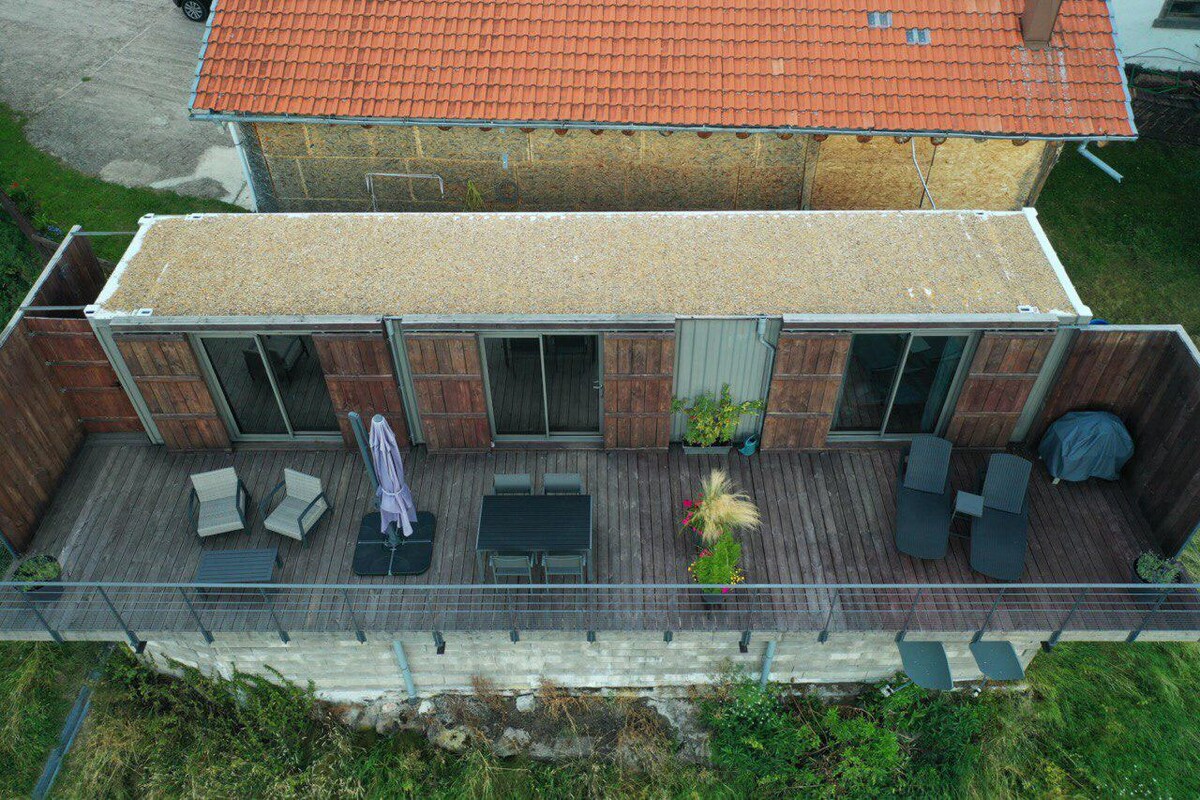 Datang dan isi ulang di kontainer independen kami dan lengkap untuk 2 orang (terisolasi penuh dan dengan semua kenyamanan modern) Pada ketinggian 650 meter, Anda akan tenggelam dalam Alam dan akan mendapatkan manfaat dari pemandangan dominan luar biasa yang tidak terlewatkan pada 180 derajat di seluruh lembah Val d'Argent. Teras pribadi yang luar biasa seluas 50 m2 (tempat berjemur, ruang duduk, Weber BBQ) Dapur lengkap, air mata air, tempat tidur organik (150x190cm), teh kopi dan teh herbal organik.