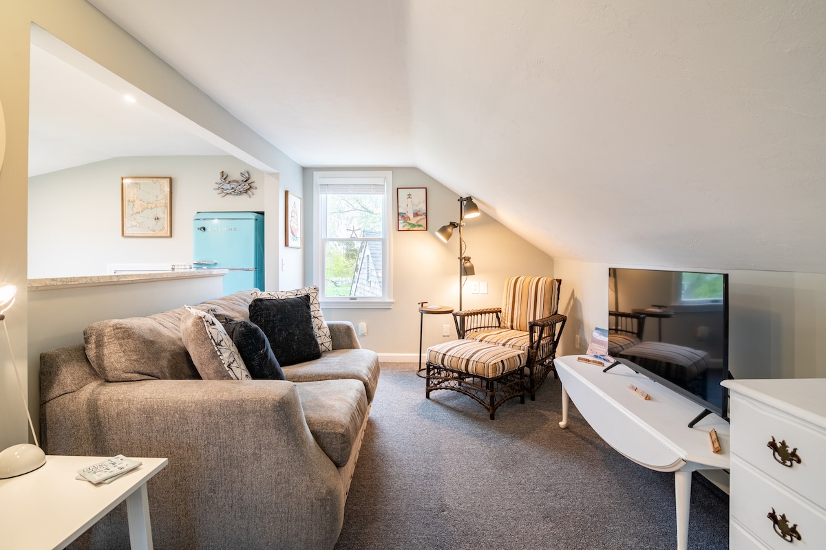 Tenang saja di liburan unik dan tenang ini hanya dengan berjalan kaki sebentar dari tiga pantai Nantucket Sound. Apartemen studio berukuran 300 kaki persegi ini terletak di lantai dua rumah kami. Dengan pemanggang Weber baru, meja piknik, dan perapian, ada banyak tempat tinggal di luar. Trotting Park, South Village, dan West Dennis Beaches semuanya bisa ditempuh dengan berjalan kaki. Nikmati makanan dari Sandbar, Swan River Seafood, Chapin's, Cleat & Anchor, & Bandera's Market di musim panas. Hubungi di luar musim.