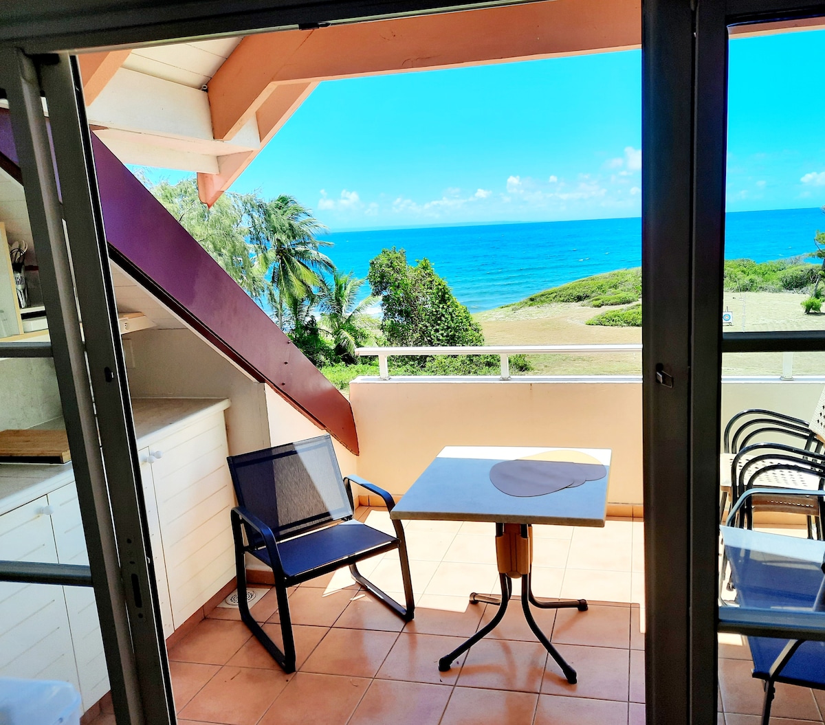 TI-PREMIERELIGNE menawarkan masa inap zen, di tepi laut dengan pemandangan laguna, di Village Vacances Ste Anne. Di lantai taman, teras dapur memberikan akses langsung, istimewa ke 2 pantai dan kolam renang pribadi dengan kursi berjemur. Apartemen ber - AC, direnovasi dengan cermat, terlindung dari pemadaman air dilengkapi dengan kenyamanan berkualitas untuk 4 orang. Di lokasi: Hiburan gratis, bar, restoran, supermarket, parkir gratis yang aman. Semuanya untuk liburan romantis atau impian keluarga!