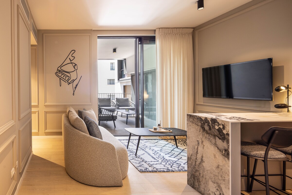 Selamat datang di Shoreline Urban Suite, tempat liburan 1BR yang apik di kompleks Okeanos yang ikonis di Herzliya. Dikelilingi oleh kaca, diterangi cahaya, dan beberapa langkah dari pantai, suite ini menawarkan akses ke kolam semi-Olimpik, pusat kebugaran, sauna, lapangan tenis, taman yang terawat, dan concierge 24/7 dan tempat parkir bawah tanah pribadi. Hanya beberapa saat dari marina, Arena Mall, dan restoran papan atas — pengalaman hidup pesisir terbaik di lokasi paling bergengsi di Israel.