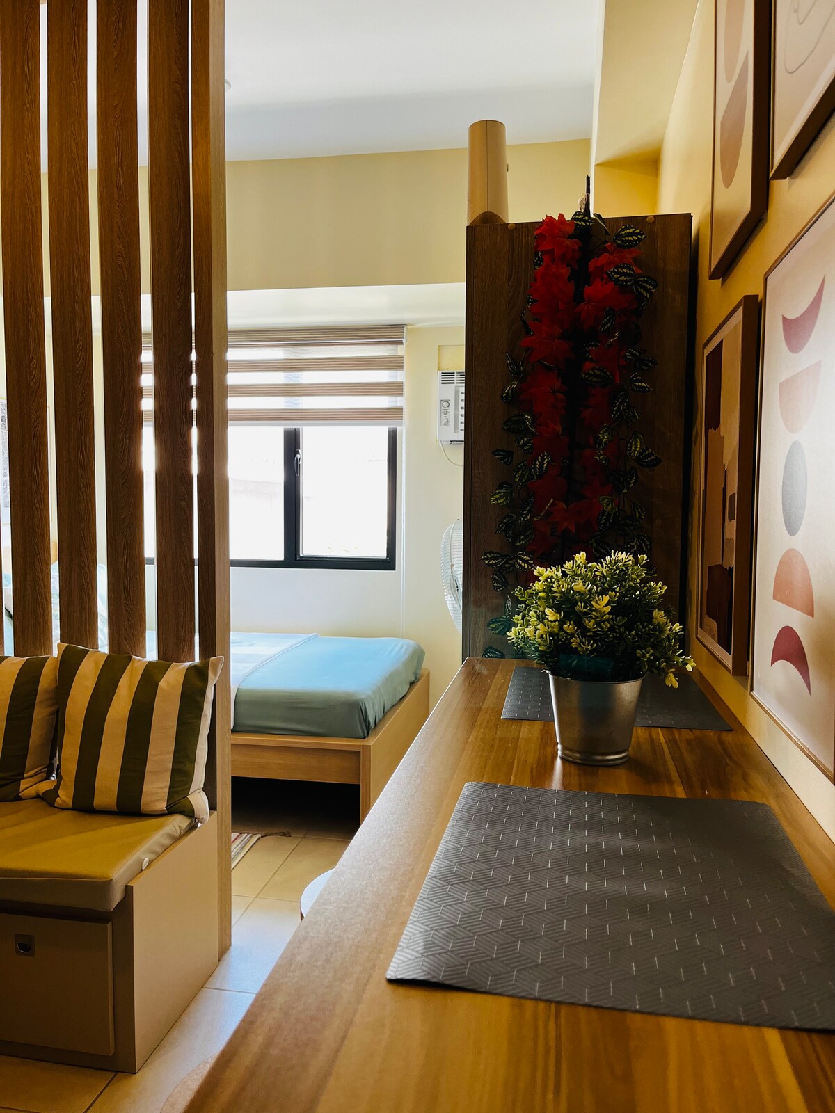 Selamat datang di Yugen Suites, tempat peristirahatan Anda yang tenang di tepi laut, tempat desain Jepang minimalis bertemu dengan keindahan alam Mt. Pico De Loro. Terletak di lantai 2 Gedung Carola B di dalam Pantai Hamilo yang indah, apartemen yang baru direnovasi ini adalah kamar tidur studio seluas 47 meter persegi dengan dapur ensuite dan kamar mandi yang dirancang dengan estetika alami yang bersih. — KAPASITAS — Peraturan Pico membatasi kapasitas kamar menjadi 6 orang, yang mencakup anak - anak berusia 1 tahun ke atas. Tidak ada pengecualian.