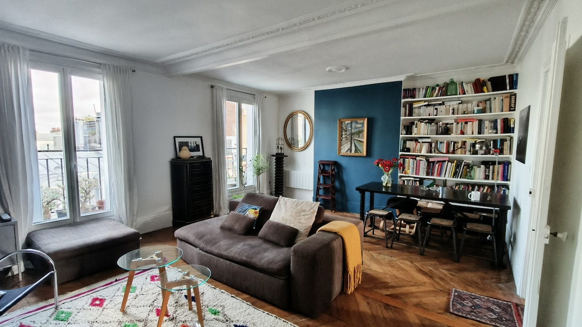 Apartemen yang luas dan cerah dengan gaya vintage, berlokasi di Batignolles. Tempat ini memiliki semua fasilitas yang Anda butuhkan: Wi-Fi, mesin cuci, mesin cuci piring, oven, microwave, banyak penyimpanan, dan bahkan turntable. Seprai termasuk tempat tidur berukuran queen (160 x 200). Apartemen berada di lantai 6 dengan akses lift. Tempat ini tenang dan sangat menyenangkan untuk menginap. Dekat ke Rue de Lévis dengan semua toko dan restoran ini.