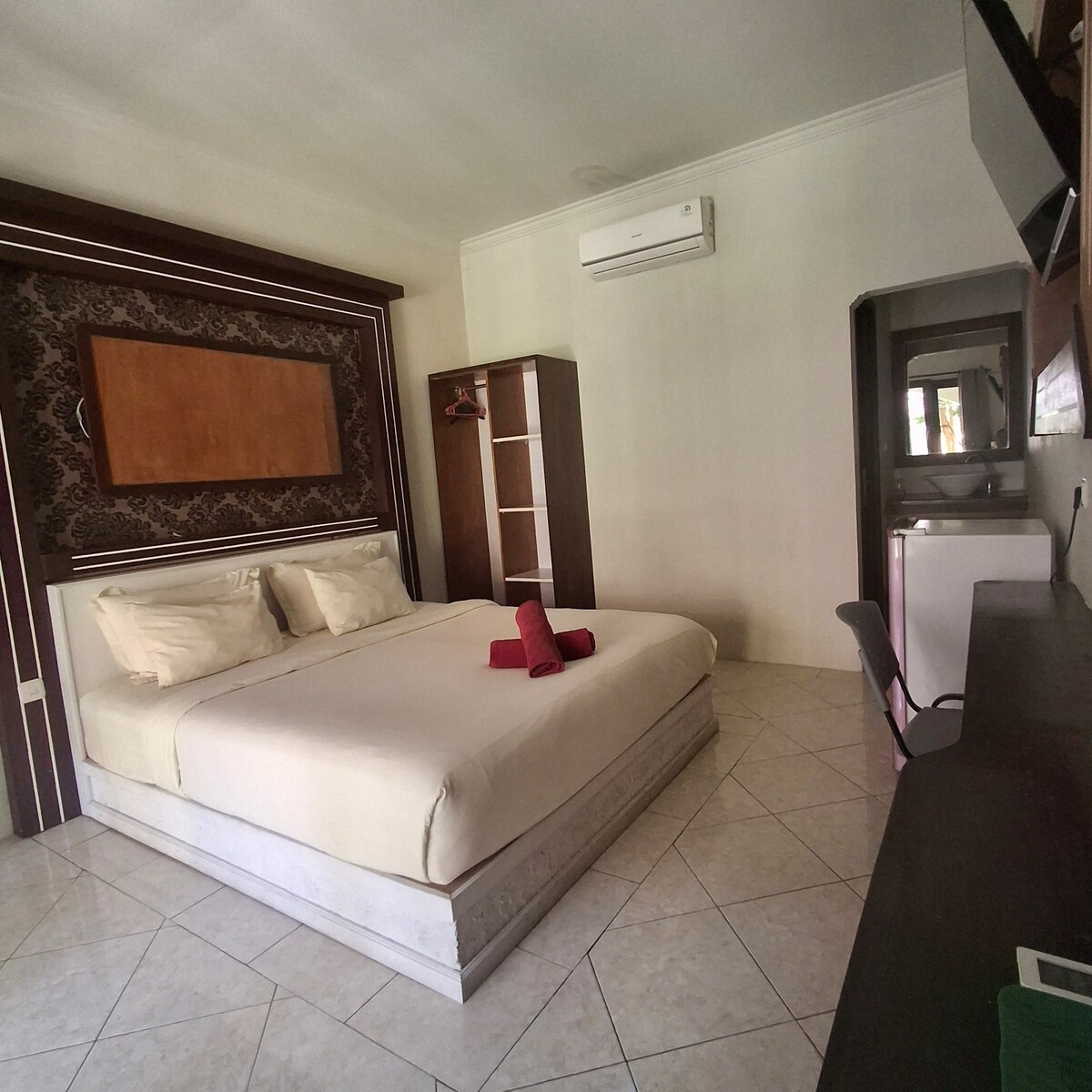Bersantai di Sahara Sands Guesthouse, hanya 2 menit berjalan kaki dari Pantai Turtle Point yang indah di Gili Trawangan. Studio satu kamar tidur yang cerah dan lapang ini menawarkan tempat peristirahatan yang tenang dengan pintu masuk pribadi, kamar mandi ensuite, dan AC. Sangat cocok untuk pasangan atau wisatawan solo yang ingin bersantai sambil menginap dekat dengan tempat snorkeling, kafe, dan keindahan alam terbaik di pulau ini.