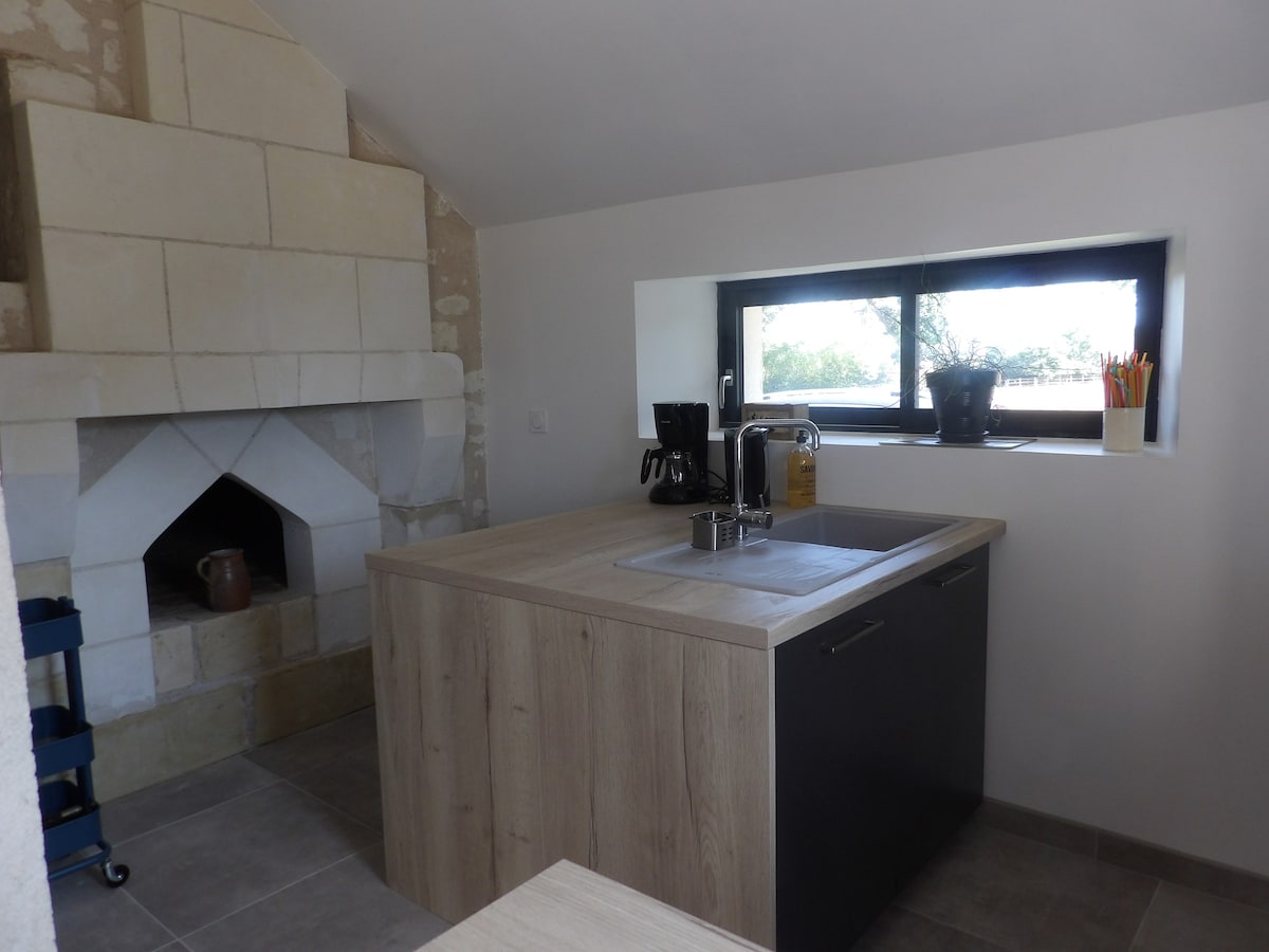 Rumah satu kamar tidur yang baru direnovasi dengan jacuzzi/bak mandi air panas pribadi dan pemandangan indah di seberang kolam renang, lubang barbekyu, dan jacuzzi yang meluap. Rumah ini terletak di lokasi chateau abad ke -15 tua dan peternakan pejantan di lebih dari 40 hektar pedesaan yang indah dan jalan - jalan yang indah. Kamar mandi dalam dan dapur mewah yang menakjubkan. Tempat tidur berukuran king dengan kasur ortopedi dan seprai Mesir. Semua handuk, termasuk handuk kolam renang disediakan Tempat tidur sofa untuk 2 tamu tambahan.