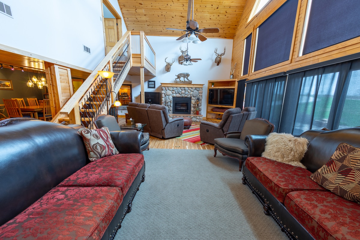 Jika Anda membutuhkan tempat peristirahatan yang tenang dan santai, Sunset View Ranch adalah tempatnya. Peternakan seluas 3 hektar ini adalah apa yang Anda butuhkan untuk melepaskan diri dari kesulitan hidup. Lanskapnya bersih dengan banyak ruang untuk berkeliaran, berjalan-jalan, dan melihat-lihat. Mobil salju juga diperbolehkan pada bulan-bulan musim dingin. Selain itu, ada lapangan basket kecil dan lubang api. Tidur 10 nyaman di 5 kamar tidur dan memiliki 3 ruang tamu dengan sofa empuk. Kami juga memiliki dapur lengkap, perapian, dan 2 kamar mandi lengkap.