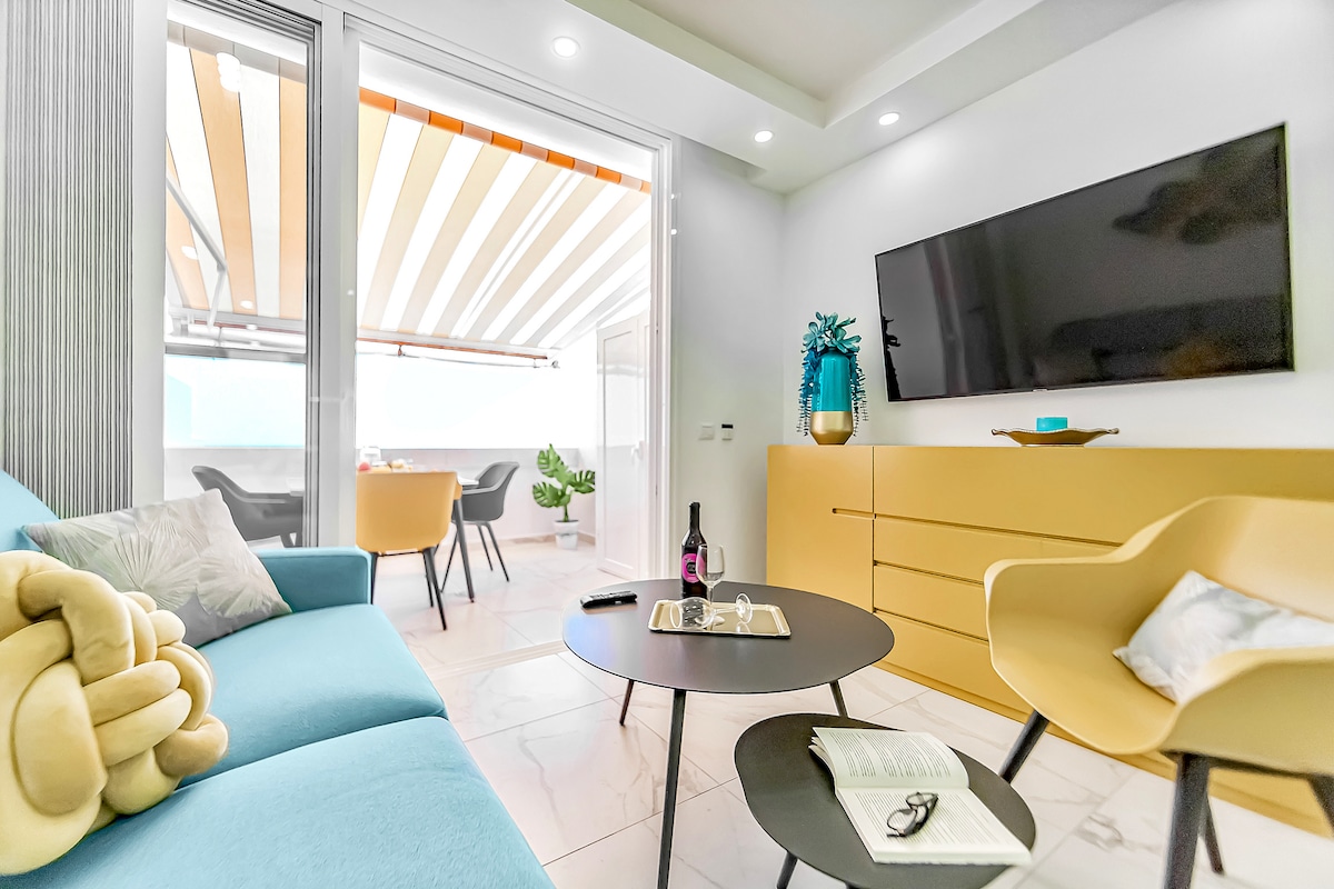 Check - out apartemen 1 kamar tidur saya yang baru direnovasi dan nyaman di pusat Playa de las Americas (wilayah yang paling hidup) di Tenerife hanya 1 jalan dari laut! Nikmati pemandangan balkon laut langsung, tempat tidur ganda anatomi berukuran king, Wifi gratis hingga 300Mbps, akses gratis ke kolam renang, parkir gratis, dapur IKEA baru dengan oven dan semua peralatan dapur berkualitas tinggi, peralatan listrik baru, sofa tidur, laundry, TV LCD dan banyak lagi!