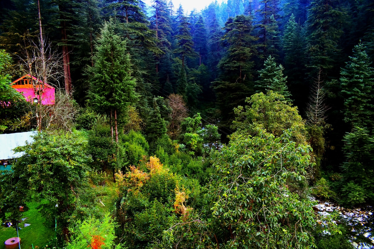 Nikmati masa inap yang nyaman di pondok tunggal kami, cocok untuk keluarga kecil atau sekelompok orang. Pondok ini memiliki dua tempat tidur king-size dan dikelilingi taman rimbun dengan pemandangan menakjubkan. Anda bisa bersantai di area makan luar ruangan bersama dan menikmati pemandangan panorama pegunungan Dhauladhar. Terletak tepat di seberang lokasi pendaratan paralayang, tempat peristirahatan ini menawarkan keamanan 24 jam, CCTV, parkir gratis, dan staf di lokasi, menjadikannya tempat ideal untuk liburan keluarga yang damai.