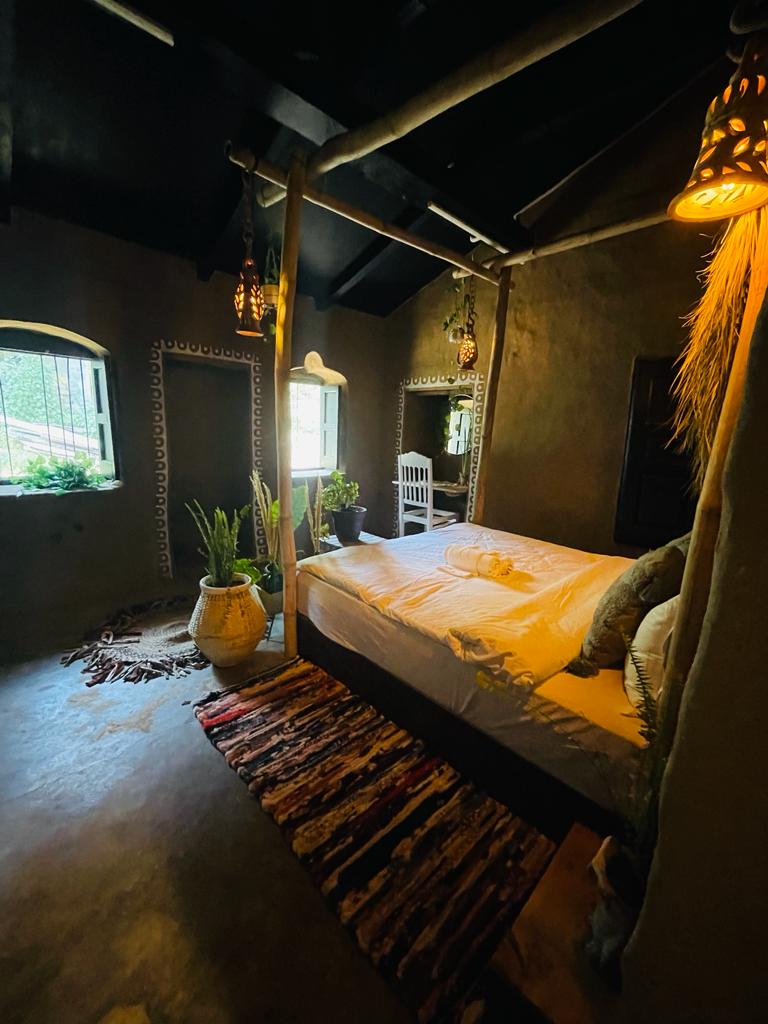 Rasakan kenyamanan dan nikmati tempat pedesaan ini. Ini adalah unit 2 kamar tidur independen dengan kamar mandi pribadi. Keistimewaan kamar - kamarnya adalah interiornya penuh selera dengan tema bohemian & fakta bahwa ini adalah rumah lumpur! Rumah lumpur ini berdiri dengan sederhana di tengah - tengah pedesaan yang luas, berpadu dengan mulus ke lingkungan alamnya. Saat Anda melangkah masuk, kesejukan dinding lumpur merangkul Anda, interiornya dilakukan secara artistik & Anda harus tetap mengalaminya.