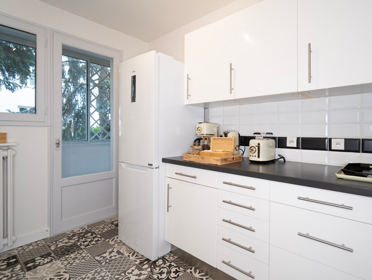 Terletak di dekat Patton Avenue, 200 meter dari Tram Lines B,C. Di hunian yang tenang dan hijau tahun 70 - an, di lantai 2 tanpa lift, menginaplah di apartemen T3 seluas 62 m2 ini benar - benar direnovasi, menyeberang dan terpapar dengan baik. Tempat ini memiliki ruang tamu, dapur lengkap, 2 kamar tidur, shower Italia Sde, toilet, teras, ruang bawah tanah dan kotak tertutup. (serat, smart tv) Dekat dengan facs, St Nicolas Pond, Balzac Park, Lake Maine. Semua toko, jalan raya, dan transportasi di dekatnya.