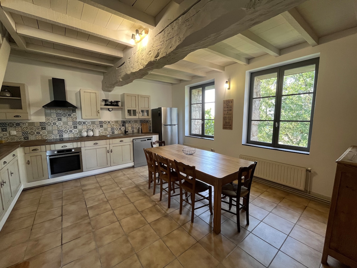 🌾Kepompong ketenangan di pusat pedesaan🌾 Pondok seluas 320 m² ini dirancang untuk menggabungkan kenyamanan, ruang, dan keramaian. Ini mencakup 4 kamar tidur utama, kamar asrama, ruang tamu yang cerah, ruang makan yang luas dan dapur lengkap. Kolam renang dalam ruangan, bak mandi air panas dengan pemandangan, biliar, arena bowling: semuanya hadir untuk bersantai dan berbagi momen menyenangkan. Ideal untuk menginap bersama keluarga, teman, atau untuk menyelenggarakan seminar dan retret di tempat yang tenang.