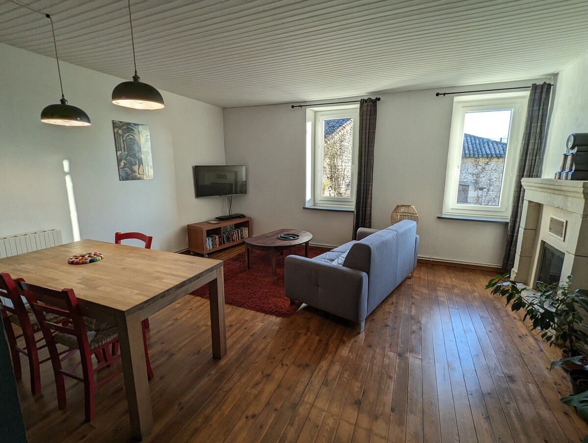 Townhouse seluas 85m2 yang direnovasi penuh dengan dekorasi Skandinavia, ideal untuk hingga 6 orang. Tempat ini mencakup 2 kamar tidur yang luas, ruang tamu yang nyaman, dapur lengkap, dan kanopi (tidak dipanaskan). Terletak 10 menit langsung dari Futuroscope, 2 km dari Parc de Loisirs de Saint-Cyr antara Poitiers dan Châtellerault. Nikmati akses mudah ke toko, transportasi, dan atraksi lokal. Sangat cocok untuk masa inap yang menggabungkan kenyamanan dan penemuan! Tempat tidur sudah dirapikan, handuk ekstra jika diperlukan.