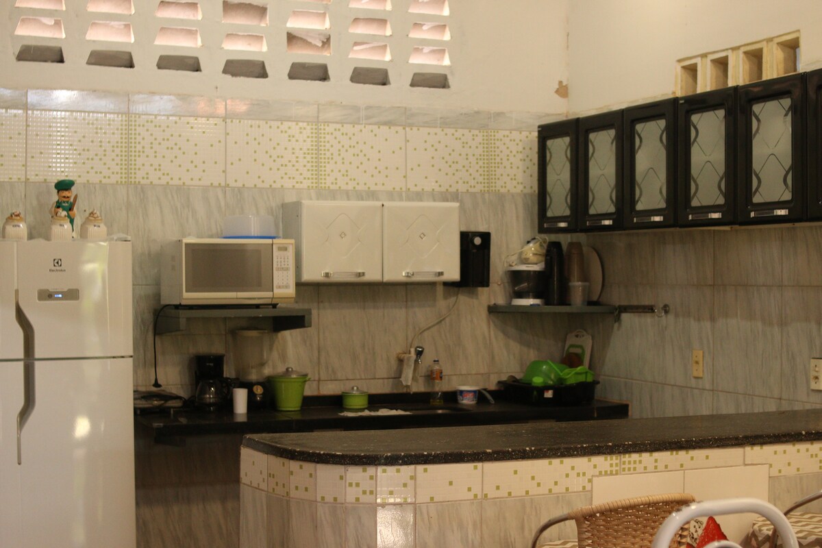 Come and enjoy an unforgettable vacation in our oasis just 300 m from the beach and near the famous Beberibe Cliffs in Ceará, Brazil. Spacious, recently renovated house with 7 bedrooms (6 are suites), all with air conditioning, double beds, and hooks for hammocks. 700 m² of built area, swimming pool, barbecue area, living and dining rooms, and fully equipped kitchen. Have fun in comfort, but please note: loud music, parties, and live bands are not allowed as this is a residential neighborhood.