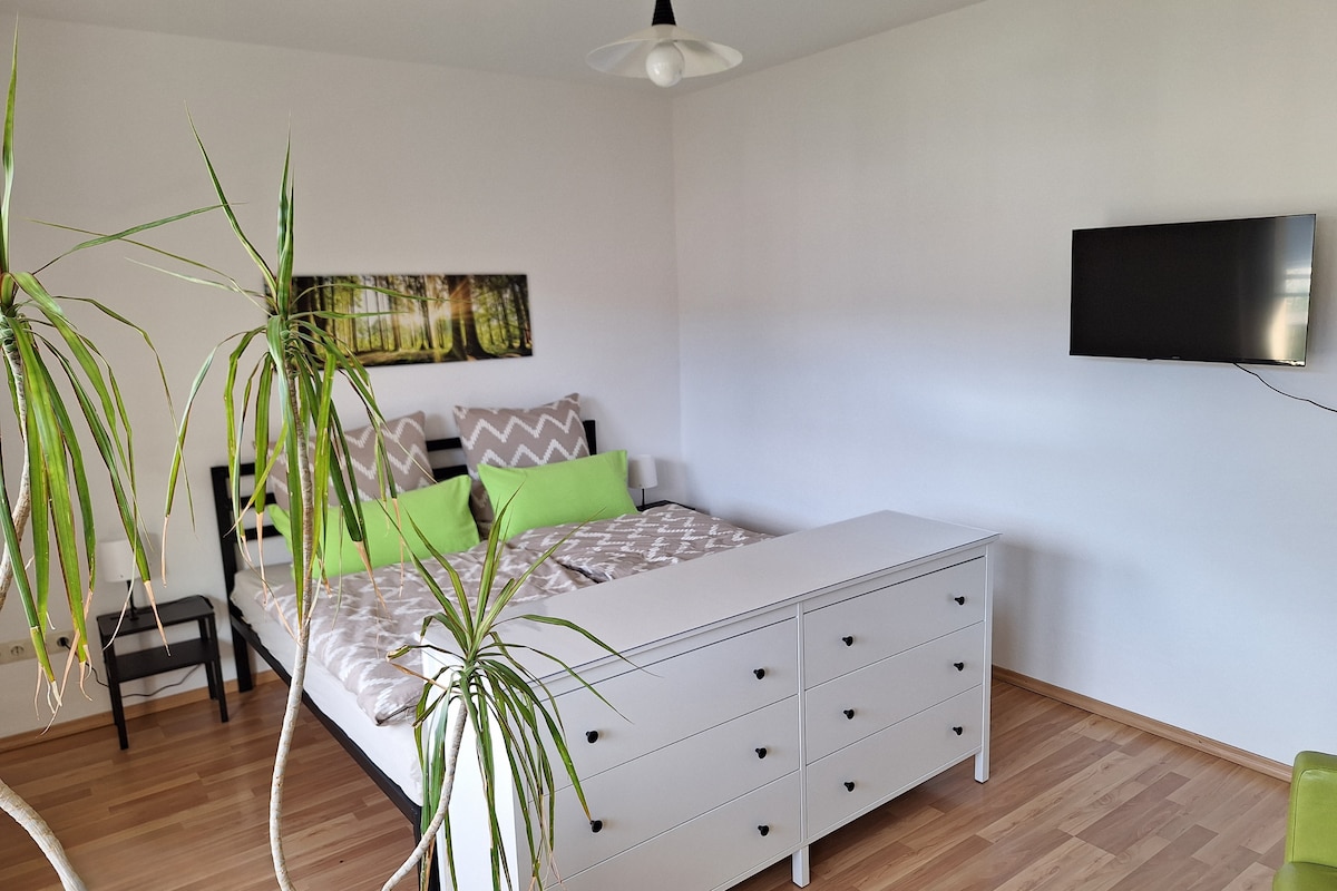 Properti saya berada di distrik Auf der Weissmark yang tenang, di sekitar tempat rekreasi dan cagar alam lokal Mattheiser Weiher . Pusat kota berjarak 4 km, ada koneksi bus yang sangat bagus. Apartemen ini berada di lantai 2 dan memiliki pintu masuk yang dapat dikunci sendiri. Tempat parkir mobil pribadi terletak tepat di depan rumah. Kamar mandi siang kecil dilengkapi dengan shower, toilet dan wastafel.
