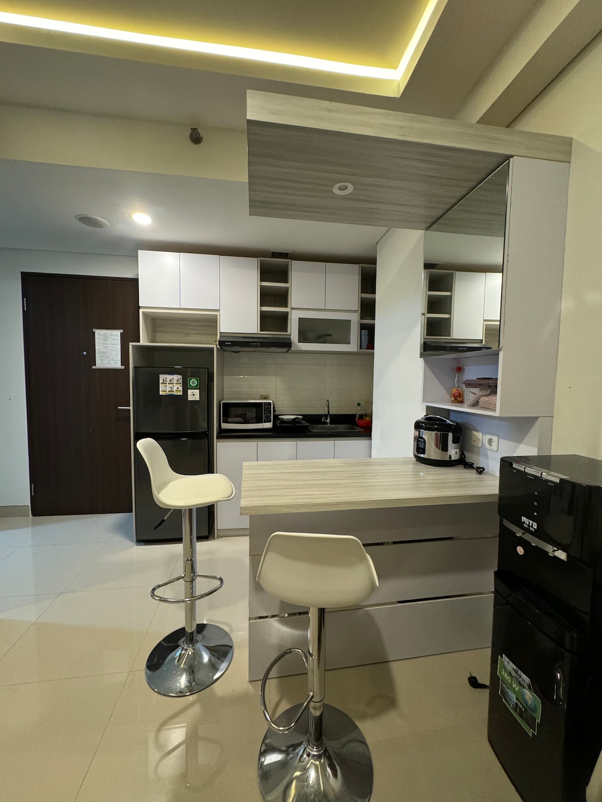 Nikmati pengalaman bergaya di tempat yang berlokasi di pusat kota ini. - 50 m ke Lagoon Mall & minimart - 1,6 km ke Tol Becakayu - 2,7 km ke LRT Cikunir 2 - 3 km ke Grand Metropolitan Mall - 4 km ke LRT Bekasi Barat - 4 km ke Tol Bekasi Barat Fasilitas - Shower air panas - Peralatan Dapur & Meja - Smart TV - Kolam renang - Area gym - dll.