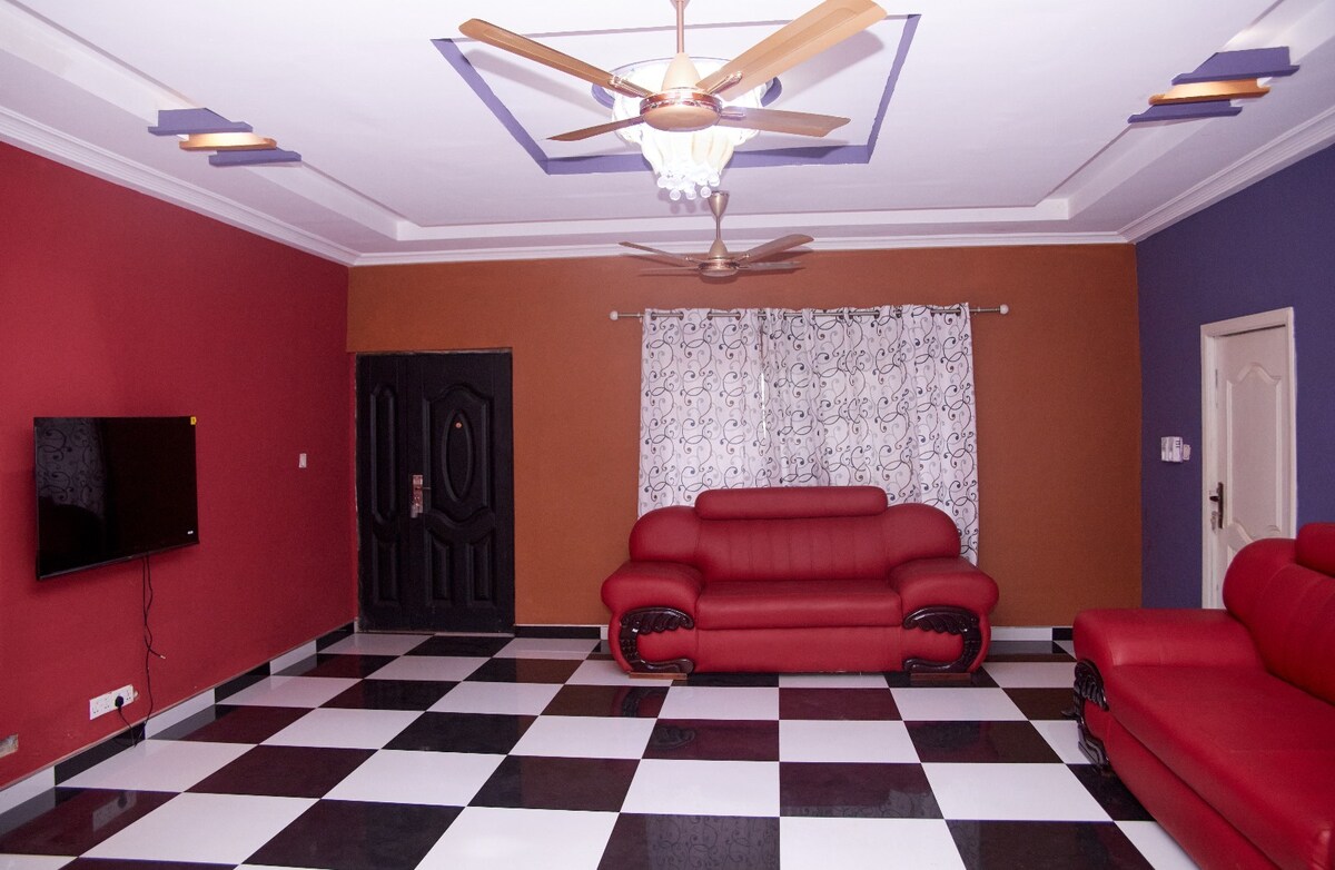 Selamat datang di apartemen 4 kamar tidur dan 2 kamar mandi kami yang luas di pusat Ofoase Kokoben. Dapat menampung hingga 8 tamu, tempat ini sangat cocok untuk keluarga dan rombongan kecil dan besar. Nikmati ruang tamu yang luas. Tempat parkir gratis tersedia di lokasi. Dapur dilengkapi dengan baik untuk kebutuhan kuliner Anda, dan fasilitas termasuk mesin cuci dan televisi dengan DSTV. Benamkan diri Anda dalam kenyamanan, kemudahan, dan sentuhan kemewahan di rumah yang menarik ini. Rasakan Ofoase Kokoben dengan penuh gaya di rumah kami yang ramah