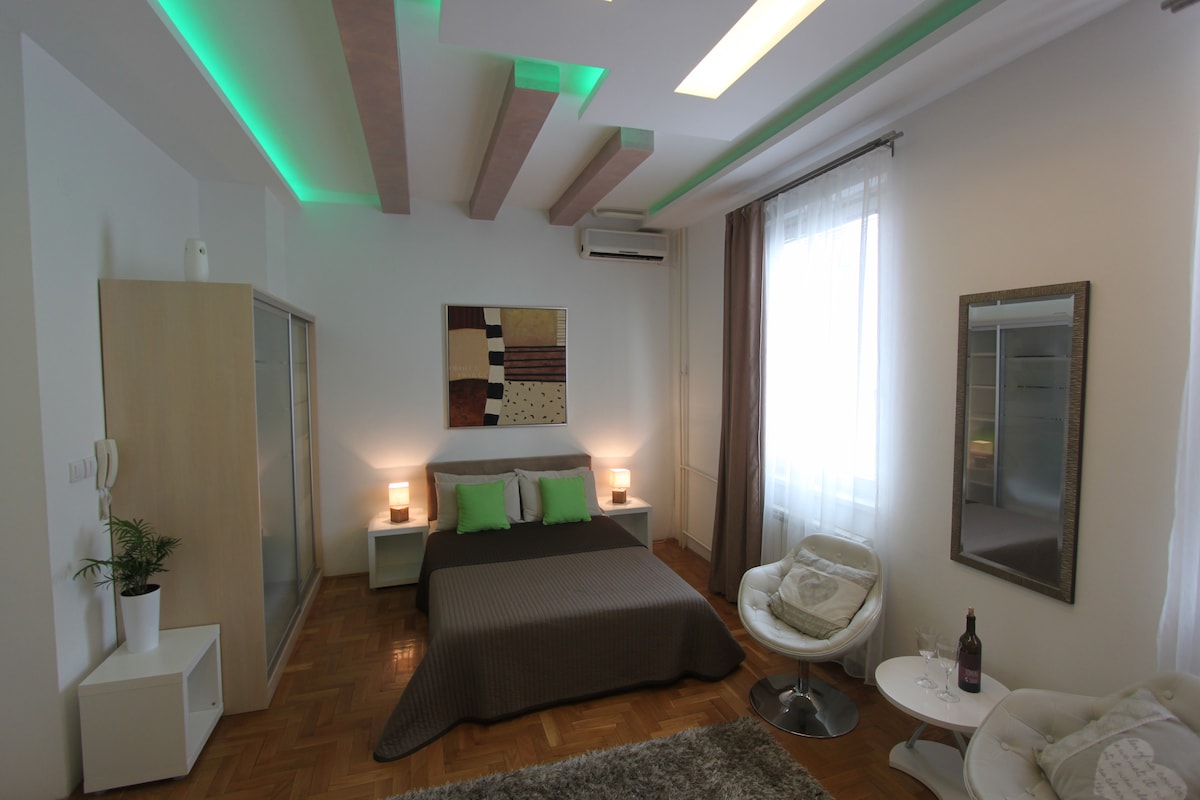 Studio Modern di Belgrade Baru | Pusat Bisnis + Garasi Gratis Menginaplah di studio bergaya dan lengkap di distrik bisnis New Belgrade, ideal untuk pelawat bisnis & penjelajah kota. Nikmati check - in mandiri, resepsionis 24/7, WiFi berkecepatan tinggi gratis & garasi pribadi. Berjalanlah ke perkantoran, pusat perbelanjaan & restoran papan atas, dengan akses mudah ke Sungai Sava, bandara & pusat kota. Pesan sekarang untuk masa inap yang lancar & bebas repot!
