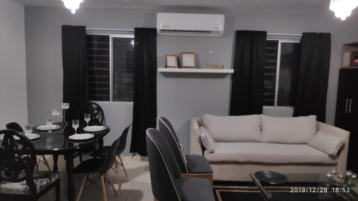 Nice House in Private Residential Rumah nyaman di subdivisi yang tenang dengan keamanan 24/7, akses terkontrol, dan pengawasan. Tempat ini memiliki: - 3 kamar tidur | 2,5 kamar mandi | Ruang tamu | Dapur | Ruang Makan - Teras dan parkir pribadi yang indah Lokasi Ideal: - Akses cepat ke bandara dan pusat kota - Alun - alun komersial di pintu masuk subdivisi dengan Seven, taquería, restoran pizza, gym, tukang cukur, apotek, dan banyak lagi - Berbelanja dengan barang - barang dasar di samping rumah Sangat cocok untuk liburan!