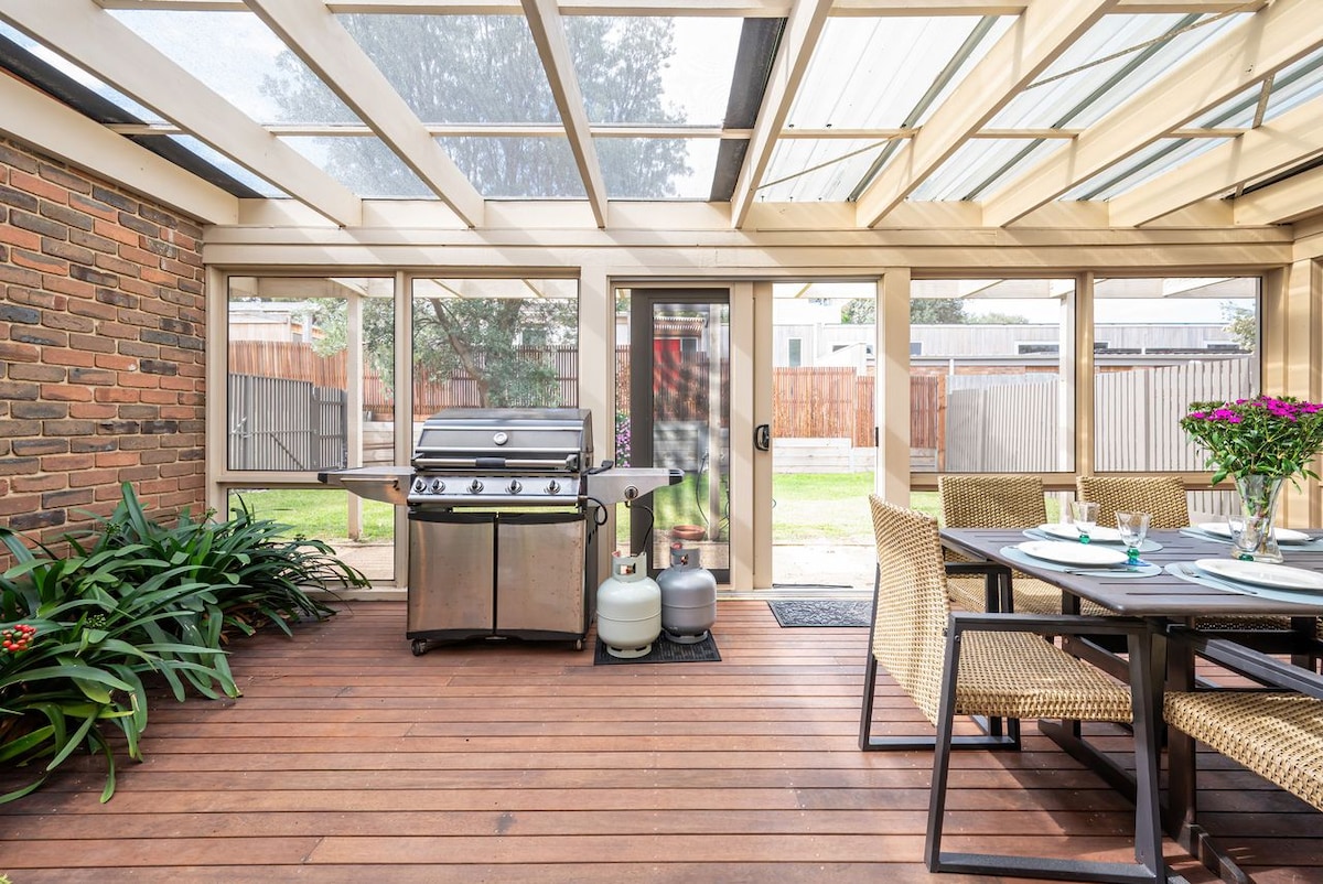 Rumah cantik kami berada tepat di seberang pantai di pusat Barwon Heads yang bersejarah. Ballara #8 menggabungkan 'rumah perahu' yang telah dipugar sepenuhnya dan menampilkan pemandangan indah ke arah sungai dengan sekilas pandang Port Philip Heads dan Pt Lonsdale Lighthouse. Ideal untuk keluarga dengan area BBQ / makan luar ruangan dan kolam renang berpemanas (keduanya di bawah penutup). Rumah ini adalah tempat menginap yang luar biasa di musim panas atau musim dingin, dengan kebakaran log gas dan AC di area tamu di lantai atas.