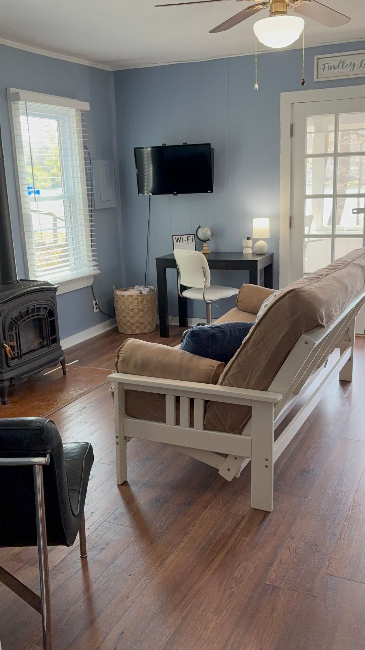 Selamat datang di Blue Canoe Lake Cottage di Cassadaga Lakes! Pondok kecil, 2 Kamar Tidur Queen/1 Kamar Mandi Lengkap, baru direnovasi, konsep terbuka, dan penuh cahaya ini menawarkan 125 kaki tepi laut pribadi, beranda tertutup yang tertutup, & detail yang penuh perhatian di seluruh bagian. Nikmati 2 kayak, 2 papan dayung, perahu dayung, 4 sepeda cruiser dewasa, perapian, & pemanggang propana. Ramah anjing & sempurna untuk hingga 4 orang dewasa — kemewahan di danau menanti! Jika dipesan, lihat properti kembar kami, Blue Oar (4BR/3BA, tepi danau!
