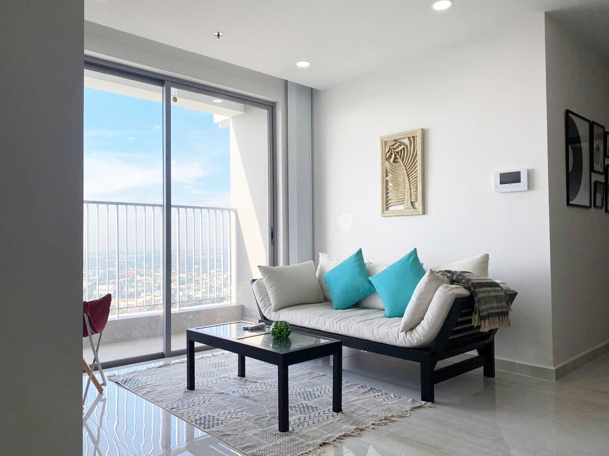 Tempat menginap unik ini memiliki gaya yang sangat pribadi. Apartemen 1 tempat tidur, terletak tepat di lantai 4 (Lantai utilitas bangunan: Akses mudah ke kolam renang, area bermain anak - anak, taman bunga, area BBQ luar ruangan, sauna, GYM), lokasi pusat kota secara teratur berlangsung pada konferensi, komersial, pertemuan layanan. Ada bus gratis ke pusat Ho Chi Minh dan sebaliknya.