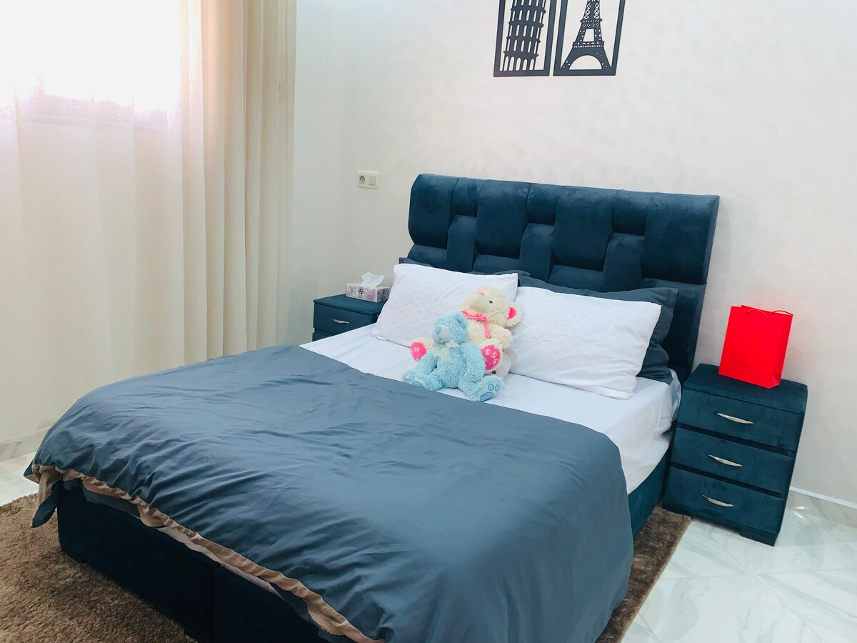 Apartemen berlokasi di pusat kota, hanya beberapa menit dari Um6p. berisi kamar tidur dengan tempat tidur double dan bisa dipisahkan , ruang tamu dengan sofa berbentuk L, TV dan wifi, dengan dapur yang lengkap, dan pemanas air listrik, dan halaman dengan peralatan olahraga. pasangan yang belum menikah tidak diperbolehkan
