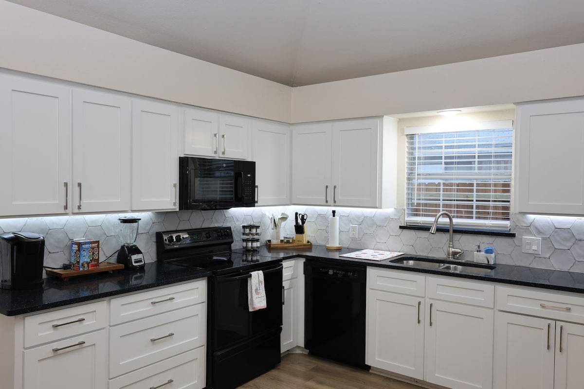 Come stay in this charming and comfortable 2 bedroom/2 bath home west of downtown Fort Worth! 15 minutes from Downtown Fort Worth and just 6 minutes from Benbrook, come explore the city or head out to nearby towns of Aledo and White Settlement! Relax in the quaint, cozy space, and enjoy a SMART TV, brand new quality mattresses, a full kitchen, 2 large bathrooms, and custom decor! Guests will also enjoy fully enclosed parking inside the sliding gate at the back of the property!